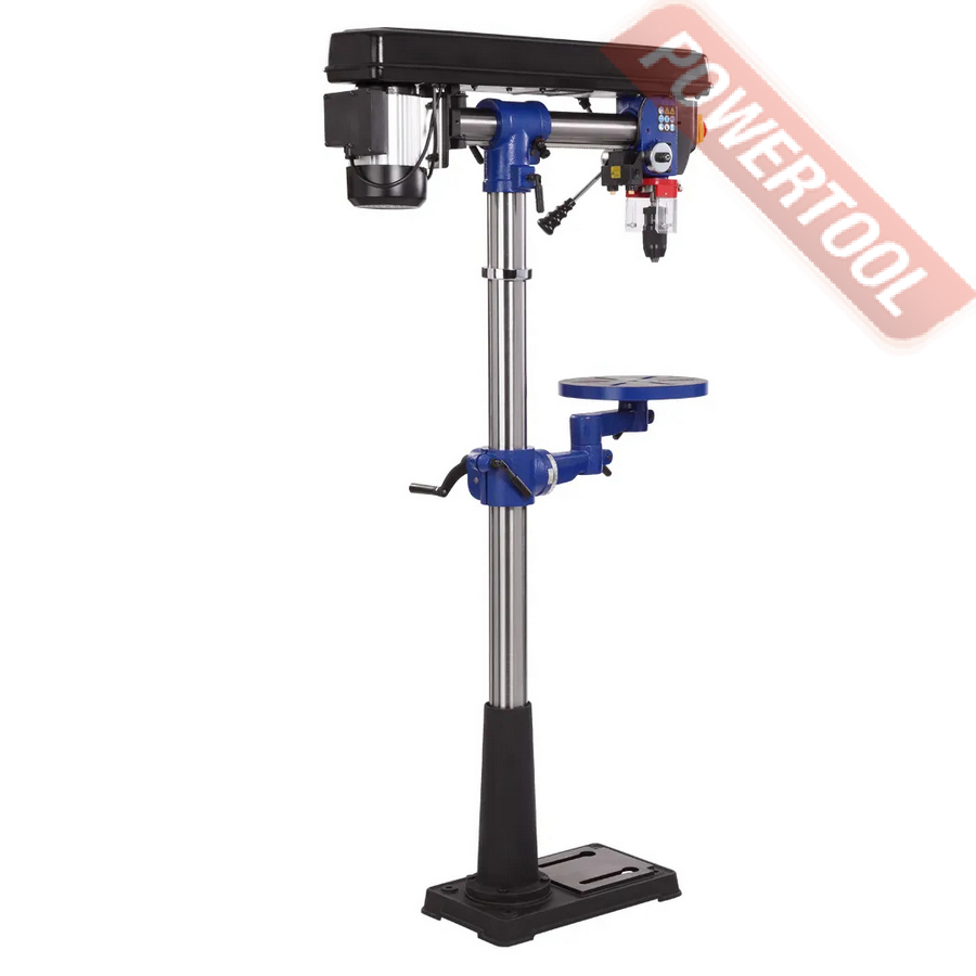 - Радиальная модель. Сверлильная головка вращается относительно вертикальной оси (360 град.), наклоняется относительно горизонтальной оси (45 град. вправо, 90 град. влево), есть ход по горизонтали.
