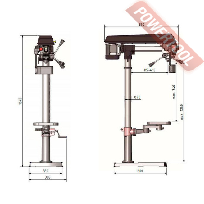 - Возможность наклона сверлильной головки на +/-45 градусов в вертикальной плоскости.