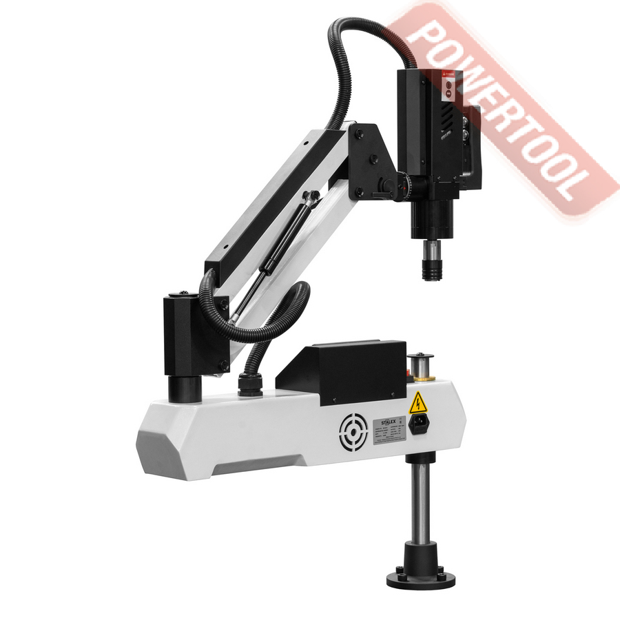 Резьбонарезной манипулятор STALEX MR-DS16 подходит для быстрого и качественного нарезания резьбы в отверстиях диаметром от М3 до М16. Он предназначен для работы с различными материалами, такими как сталь, чугун, цветные металлы и пластики. Манипулятор использует американскую технологию GOSYNC, при которой станок оснащён синхронным сервоприводом и планетарным редуктором. Такой привод обеспечивает мощное и стабильное резьбонарезание даже при интенсивном использовании.