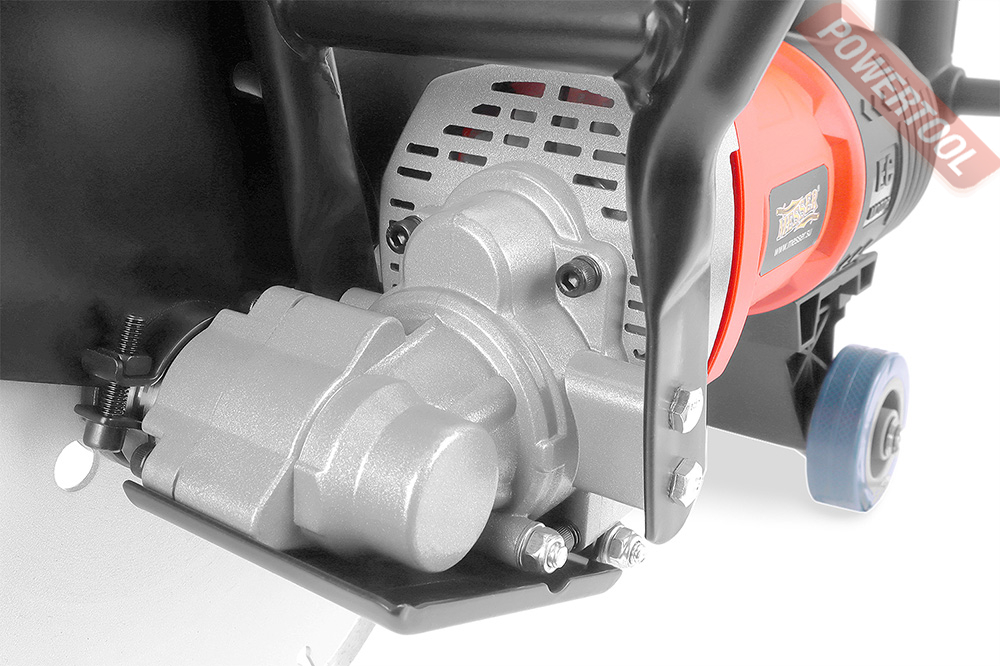 - Бетонорез снабжен системой подачи воды в зону реза, что значительно увеличивает ресурс диска и уменьшает выброс пыли в окружающую среду.