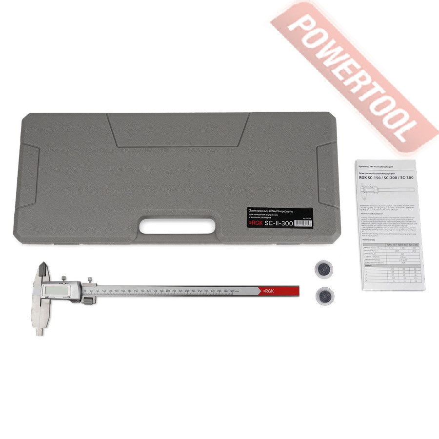 Штангенциркуль электронный RGK SC-II-300 с поверкой, где SC означает - штангенциркуль, II - второй тип, а 300 - это максимальное значение измерений в мм.