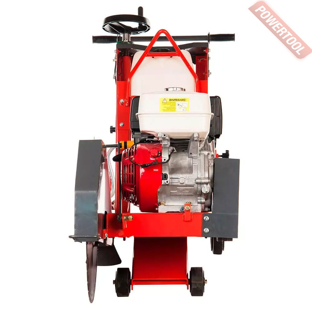 Швонарезчик бензиновый, диск 500х25,4 мм, мах глубина реза 175 мм, бензиновый двигатель Honda GX390 мощностью 11 л.с., расход топлива 3,7 л/ч, топливный бак 6,1 л, емкость картера 1,1 л, вес 125 кг, размер ДхШхВ ДхШхВ 1240х640х970 мм.