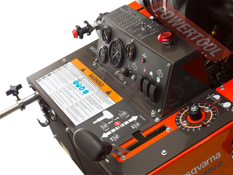 • Панель управления с датчиком температуры, амперметром, тахометром и переключателем муфты режущего диска.