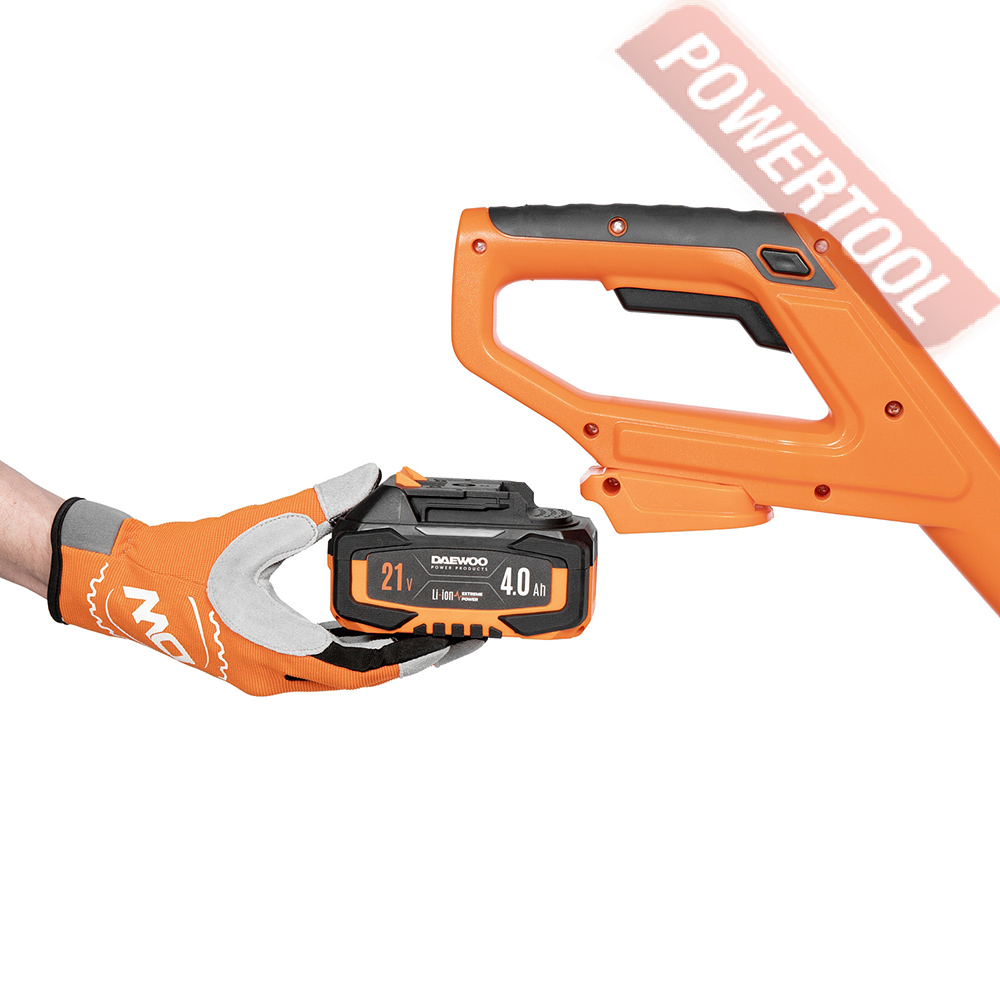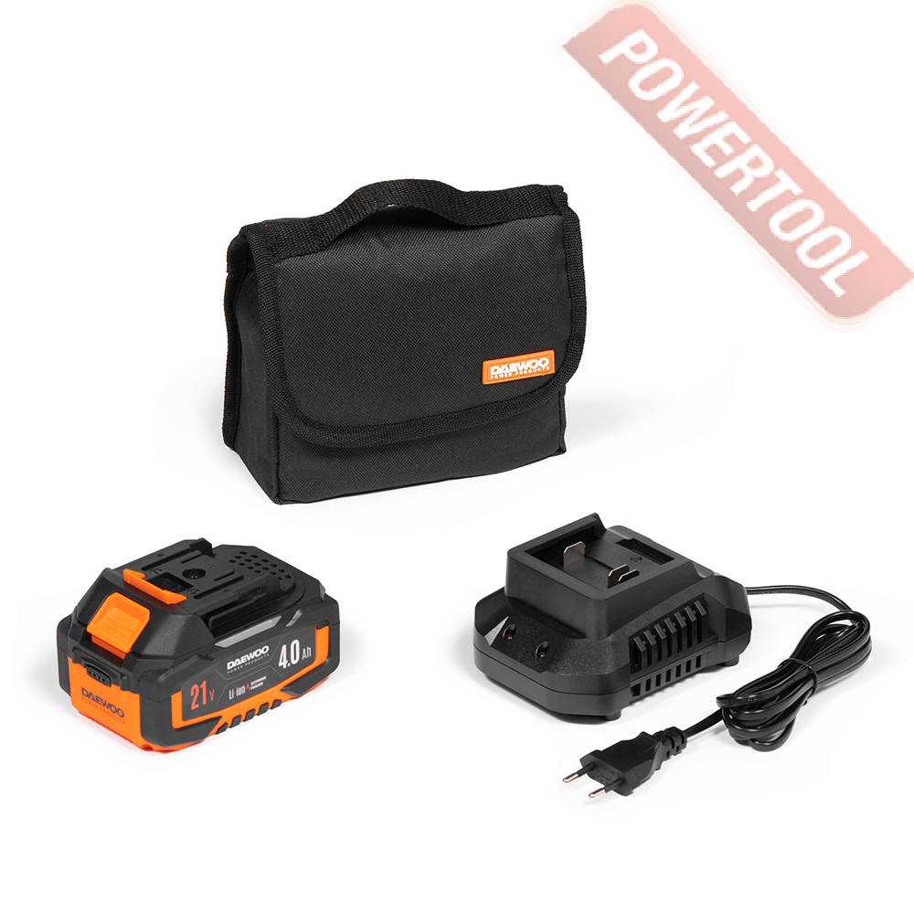 - 21В Li-ion единая платформа. Модель совместима со всеми аккумуляторными инструментами и батареями DAEWOO линейки 21В.