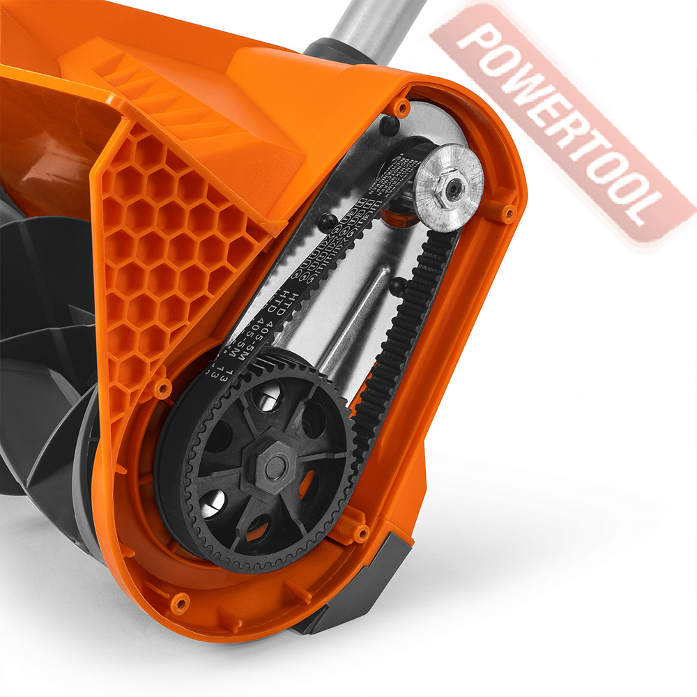 - Ременный привод. Ременной привод обеспечивает эффективную передачу крутящего момент двигателя на шнек и защищает двигатель в случае заклинивания шнека