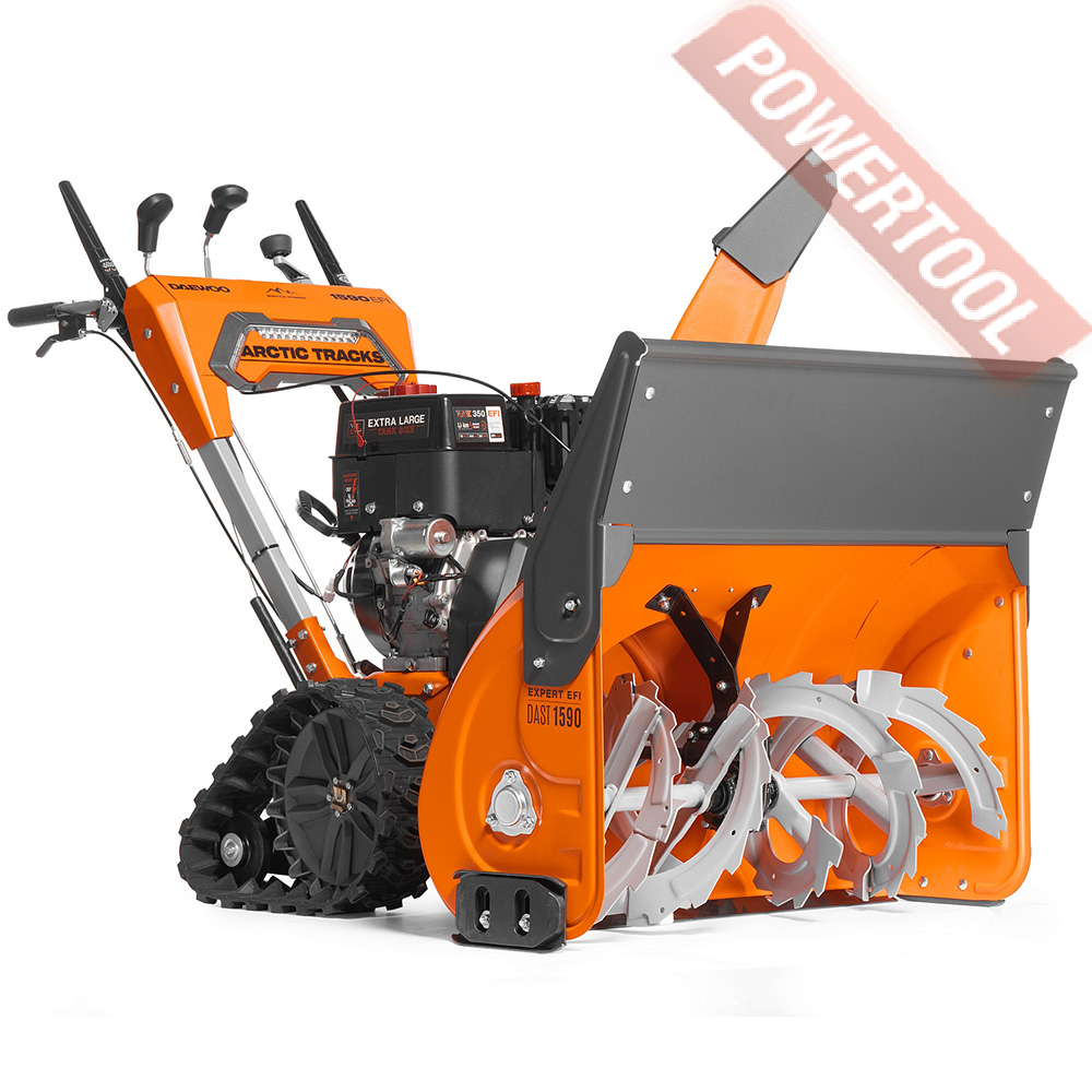 Снегоуборщик гусеничный самоходный DAEWOO Dast 1590 Hydro EFI специально разработан для использования при низких температурах в зимнее время и оснащен мощными двигателем. Предназначен для уборки и очистки дорог и других ровных твердых поверхностей от большого количества снежных масс, удаления снежных завалов, расчистки загородных участков дорог, тротуаров и загородных домов от выпавшего и наметенного снега.