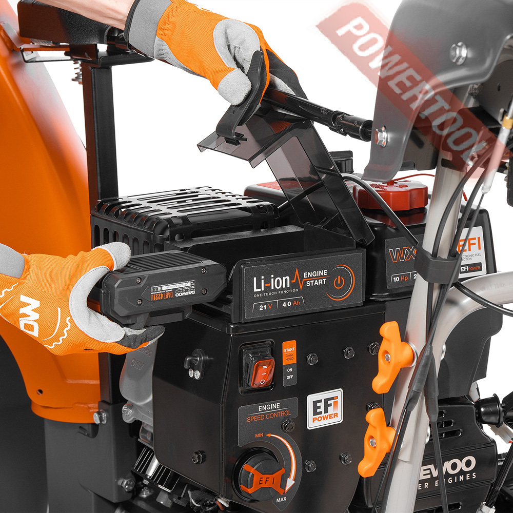 - WXE 300 EFI инжекторный двигатель DAEWOO. Инновационный двигатель WXE 300 EFI с системой непосредственного впрыска топлива разработан специально для снегоуборщиков.
