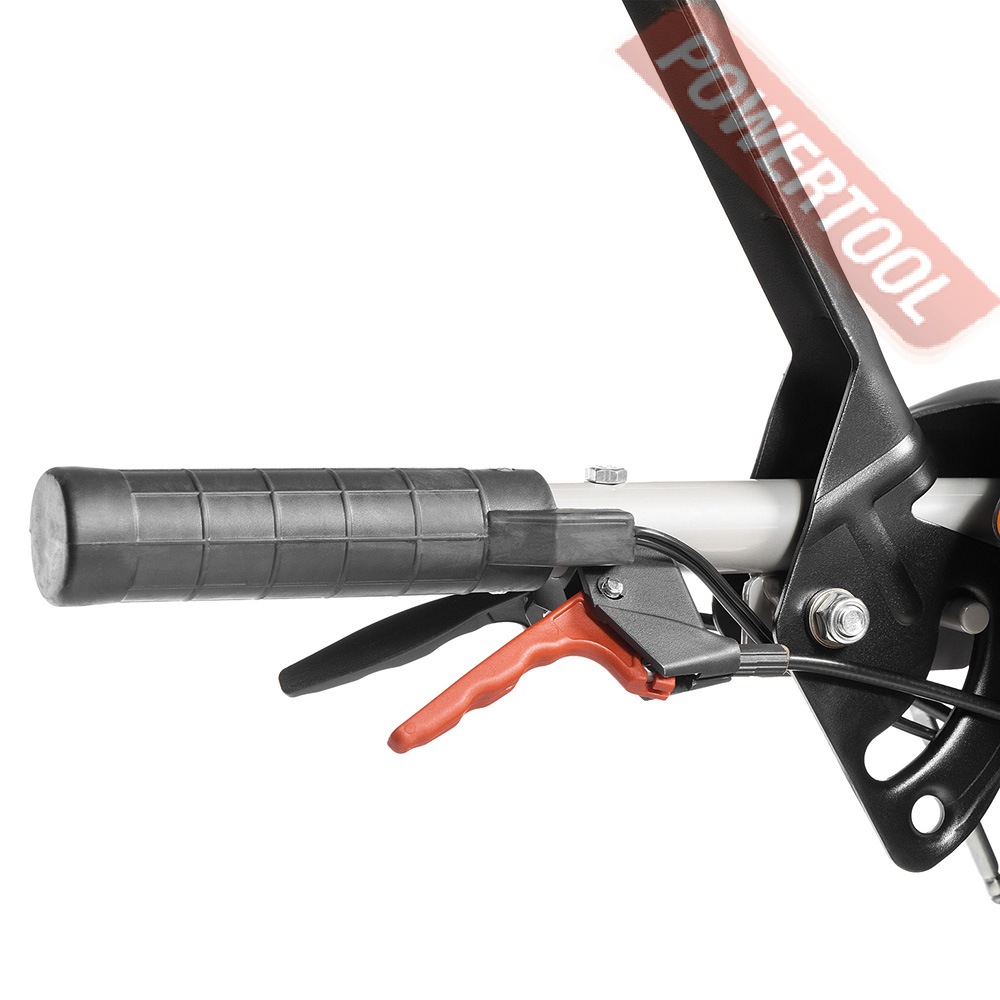 - Взаимная блокировка рукояток. Нажатие 2-х рукояток управления приводит к их взаимной блокировке.Это позволяет управлять снегоуборщиком одной рукой, и одновременно изменять направление и дальность выброса снега без остановки работы.