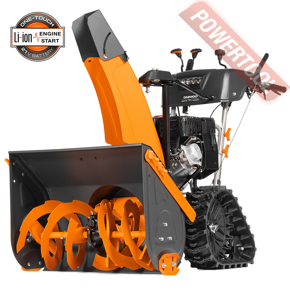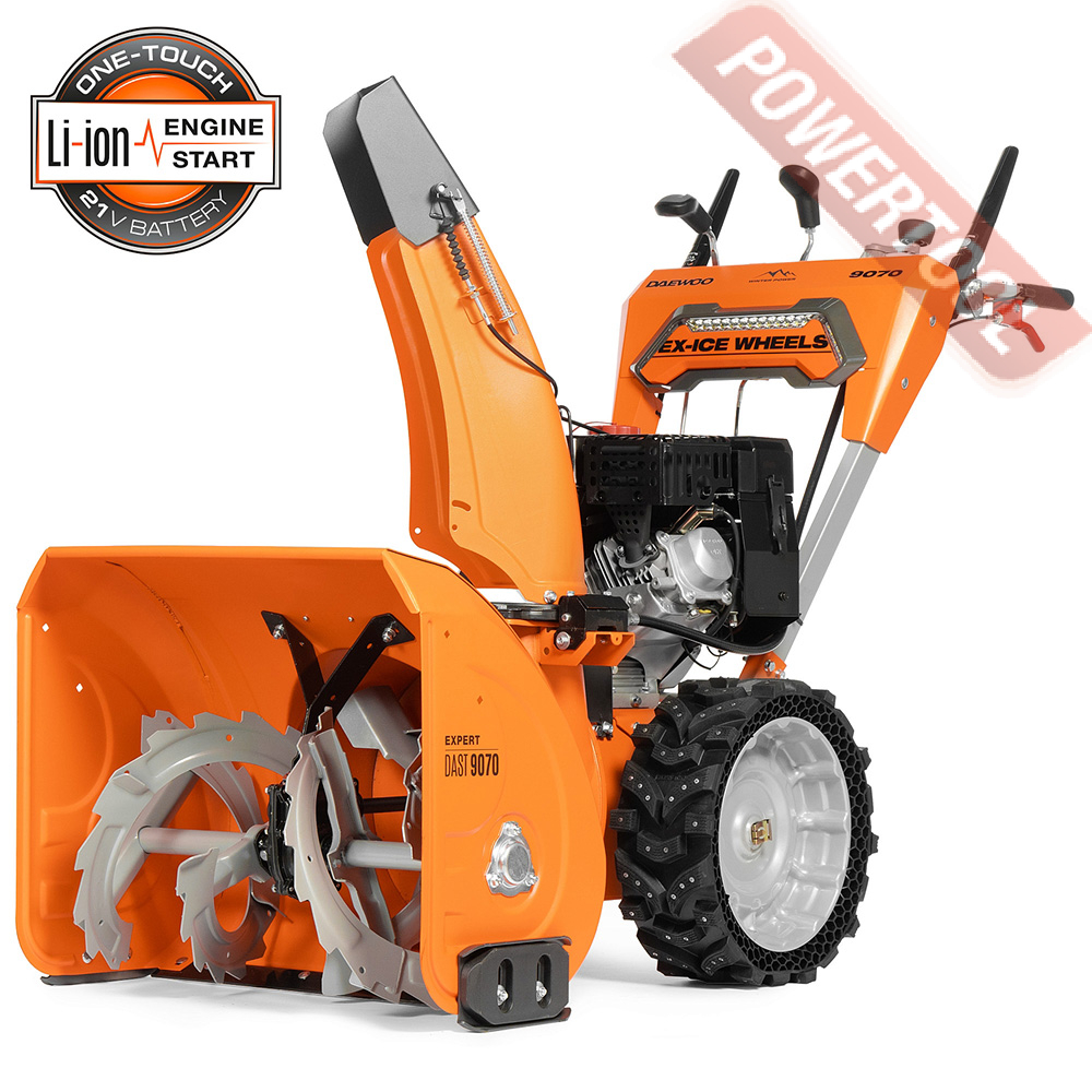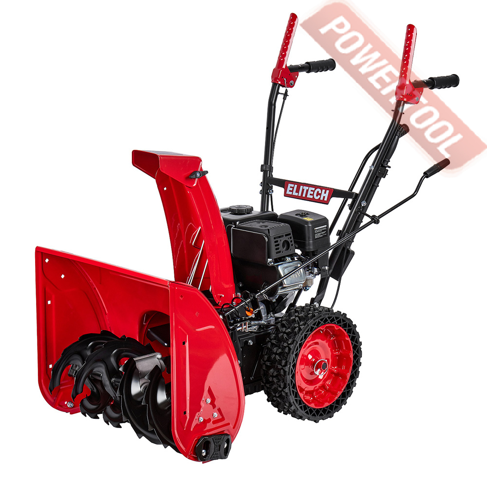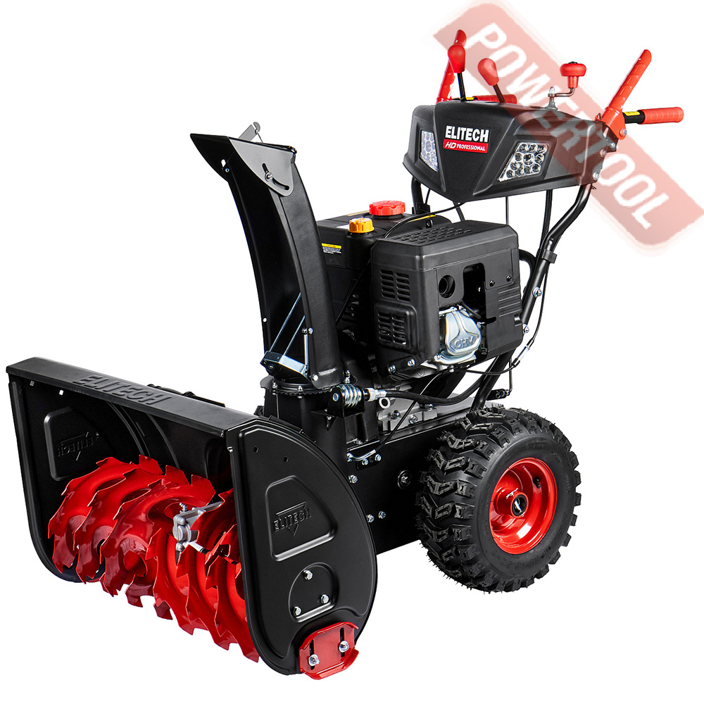 - Легкий запуск снегоуборочной машины обеспечивается благодаря наличию электрического стартера, работающего от сети 220 Вольт. Таким образом, для того чтобы воспользоваться стартером, нужно просто подключиться к электрической розетке и нажать соответствующую кнопку.