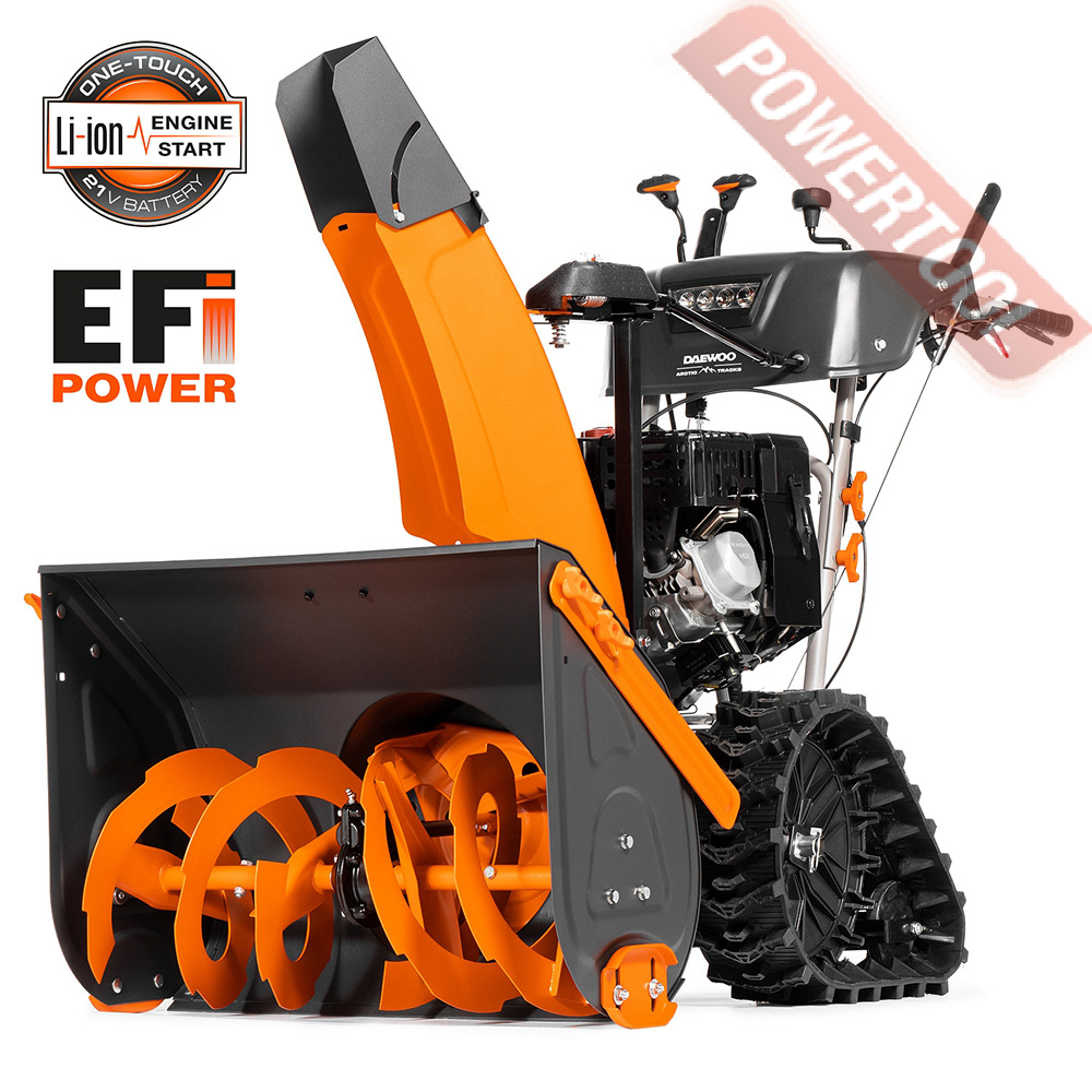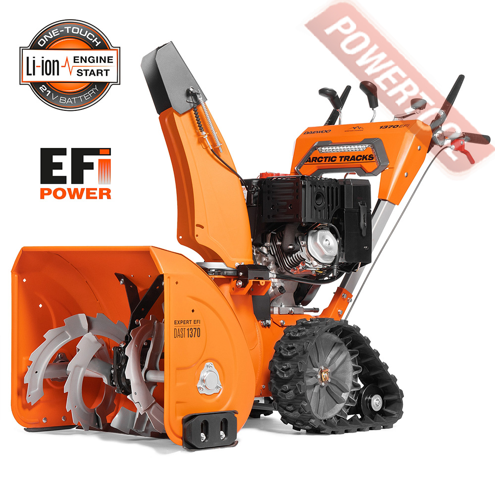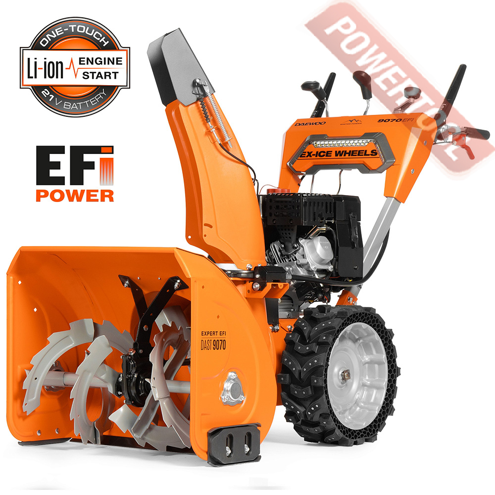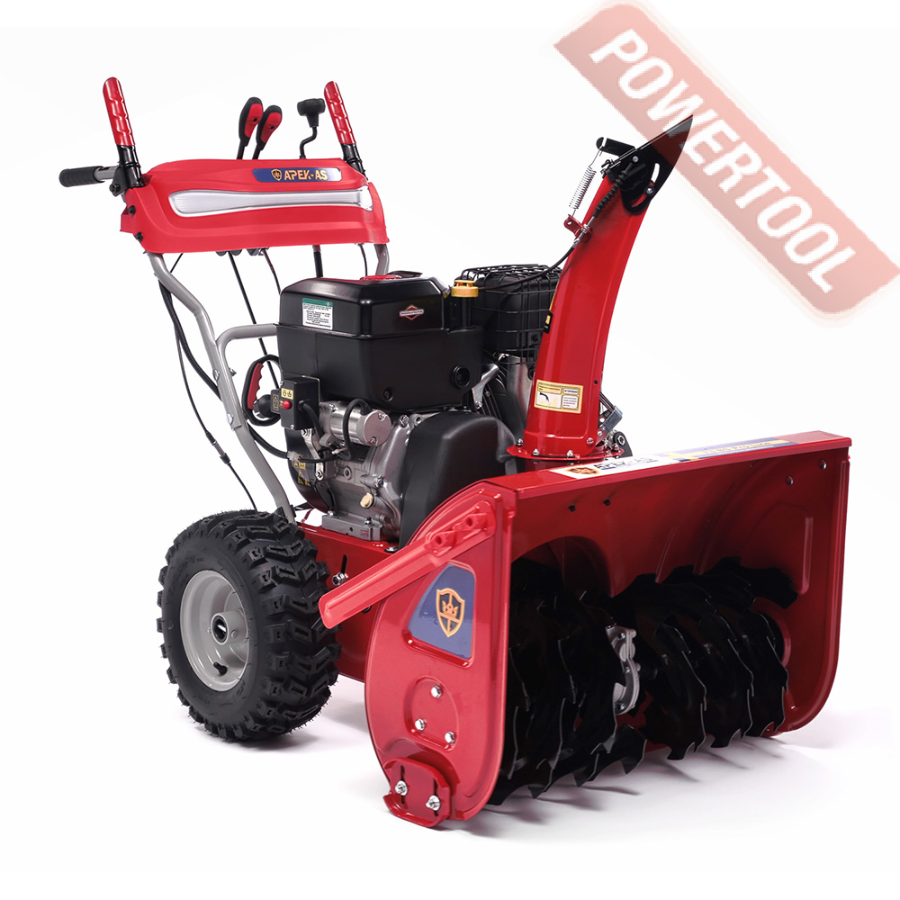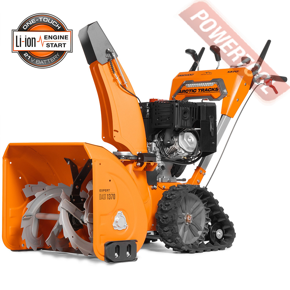 - Легкий запуск снегоуборочной машины обеспечивается благодаря наличию электрического стартера, работающего от сети 220 Вольт. Таким образом, для того чтобы воспользоваться стартером, нужно просто подключиться к электрической розетке и нажать соответствующую кнопку.