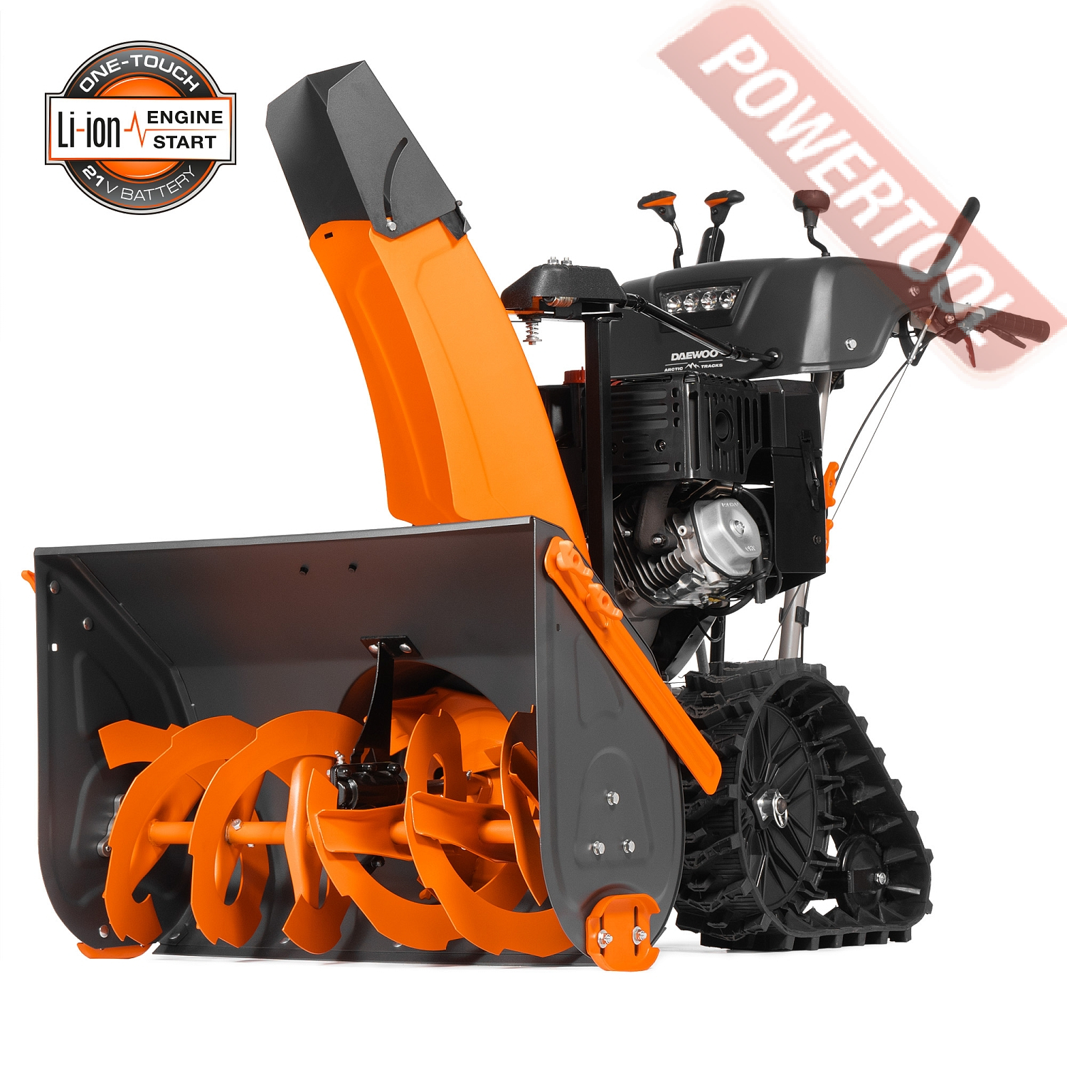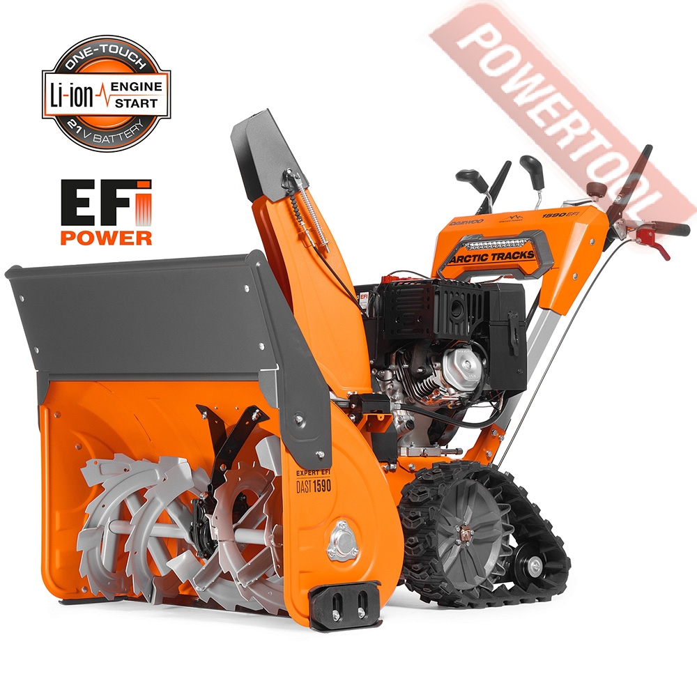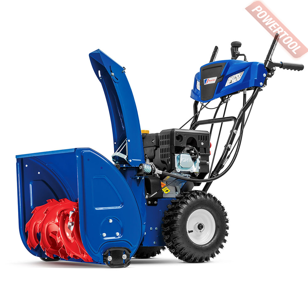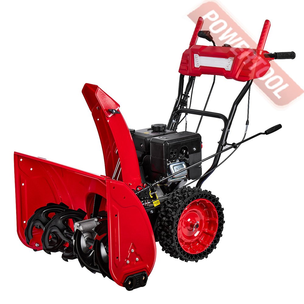 - Легкий запуск снегоуборочной машины обеспечивается благодаря наличию электрического стартера, работающего от сети 220 Вольт. Таким образом, для того чтобы воспользоваться стартером, нужно просто подключиться к электрической розетке и нажать соответствующую кнопку.