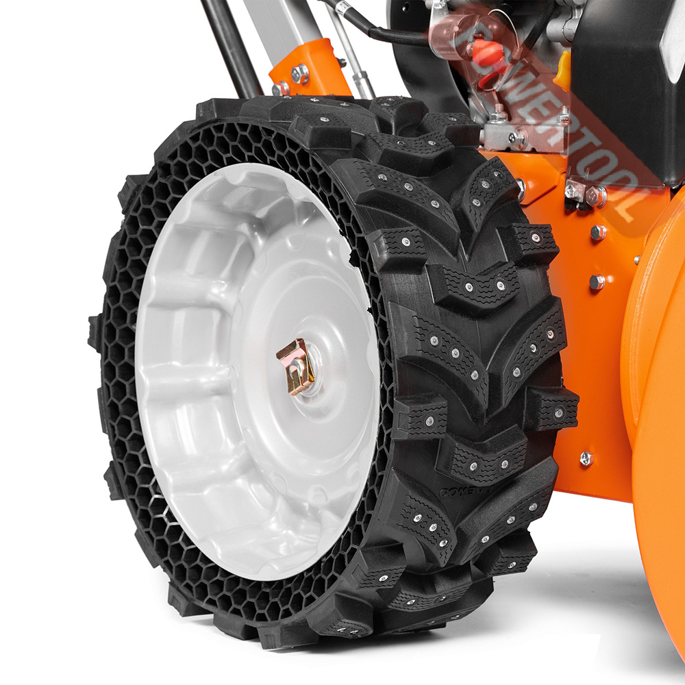 - Уникальные колеса EX‑ICE WHEELS. Широкие безвоздушные колеса созданы специально для снегоуборщиков. Колеса EX‑ICE обладают лучшим сцеплением с поверхностью среди всех зимних шин. Лучшая проходимость и маневренность в классе снегоуборщиков.
