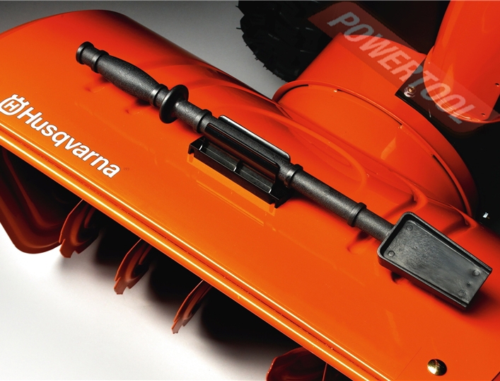 - Благодаря галогеновым фарам, которые расположены в верхней части бензинового снегоуборщика Husqvarna, работа в темное время суток будет безопасной и удобной для оператора.