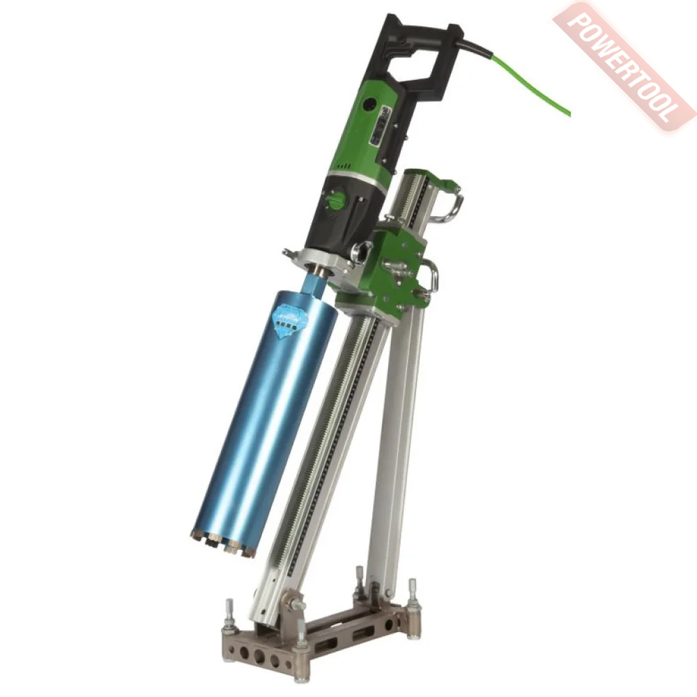 Стойка для алмазного сверления, max диаметр сверления коронкой 250 мм, наклонная стойка 45-90 градусов, ход каретки 550 мм, крепление мотора на универсальную пластину, анкерное крепление к поверхности, вес 11,8 кг.