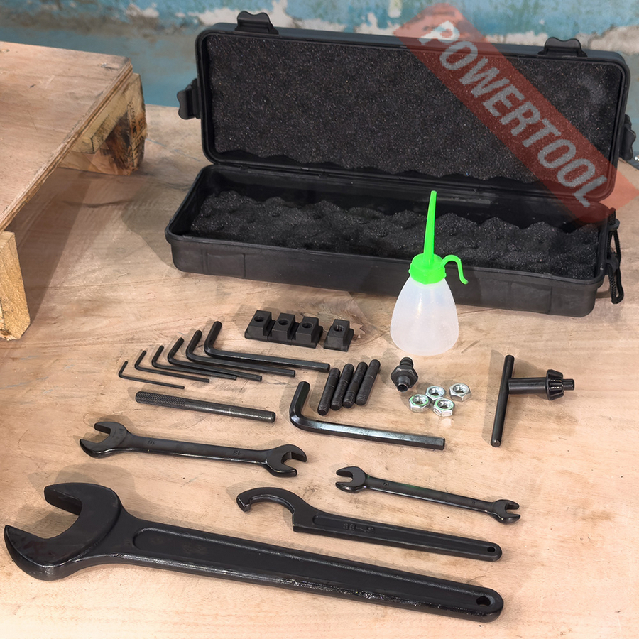 - Наличие трех Т-образных пазов дает возможность оснащать агрегат дополнительными приспособлениями (например, тисками).