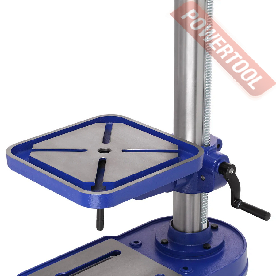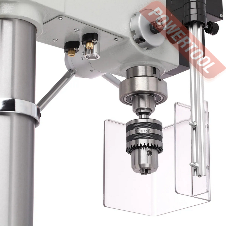 Сверлильный станок, 1100 Вт, 220 В, max диаметр сверления 25 мм, частота вращения шпинделя 160-3000 об/мин, 16 скоростей, ступенчатая регулировка оборотов, конус шпинделя КМ-3, посадочное сверлильного патрона B16, диапазон хвостовиков для патрона 1-16 мм, ход пиноли шпинделя 80 мм, вылет шпинделя 215 мм, шпиндель-стол 440 мм, шпиндель-основание 640 мм, диаметр стойки 80 мм, размер основания 545х330 мм, размер стола 315х315 мм, наклон стола влево/вправо 45/45 градусов, 4 Т-образных паза, подсветка рабочей зоны, лазерный целеуказатель, габариты ДхШхВ 725х380х1055 мм, вес 70 кг, в комплекте патрон ключевой В16 1-16 мм, оправка КМ-3/В16, защитный экран, набор инструментов.