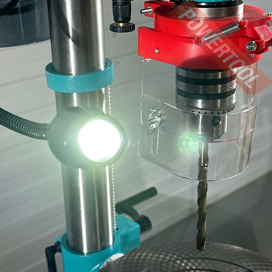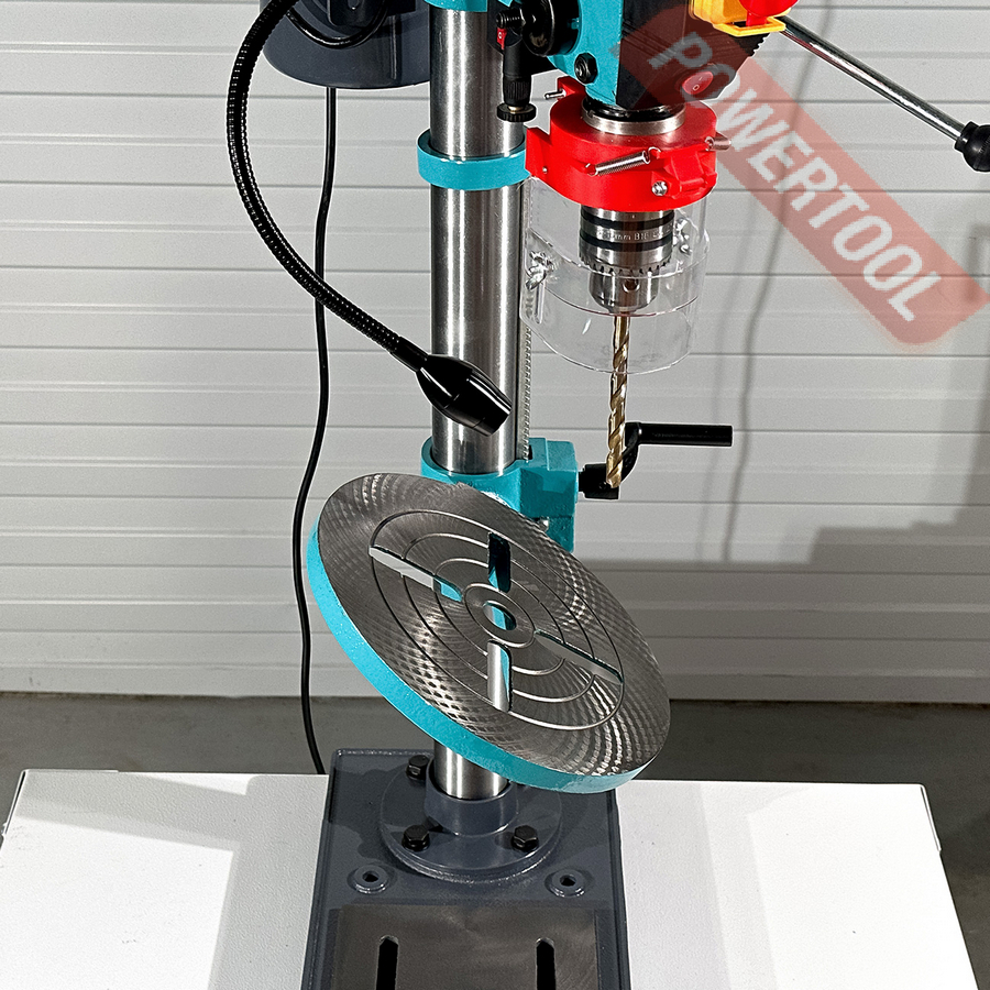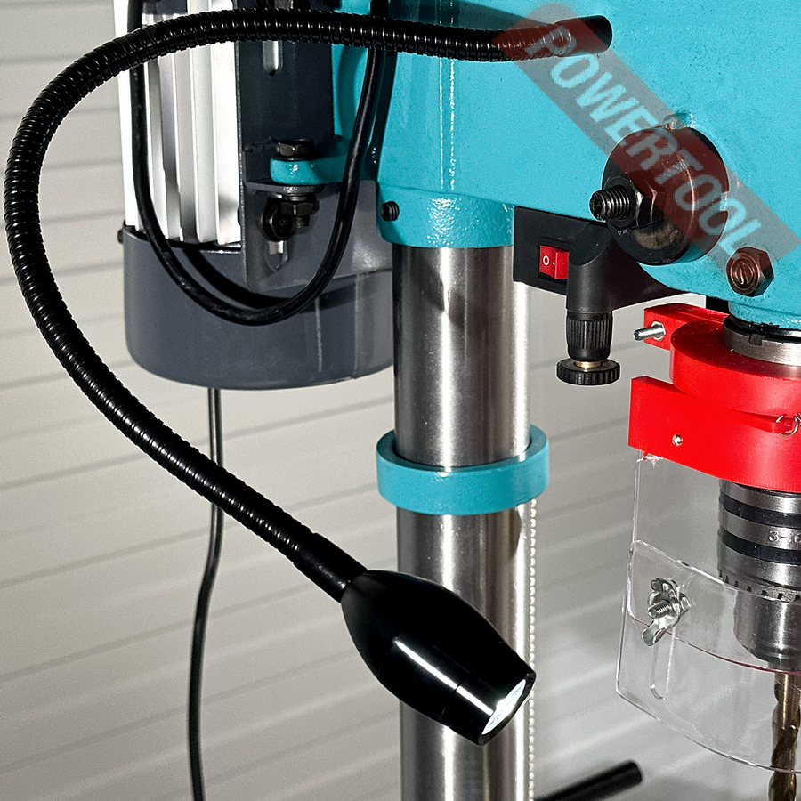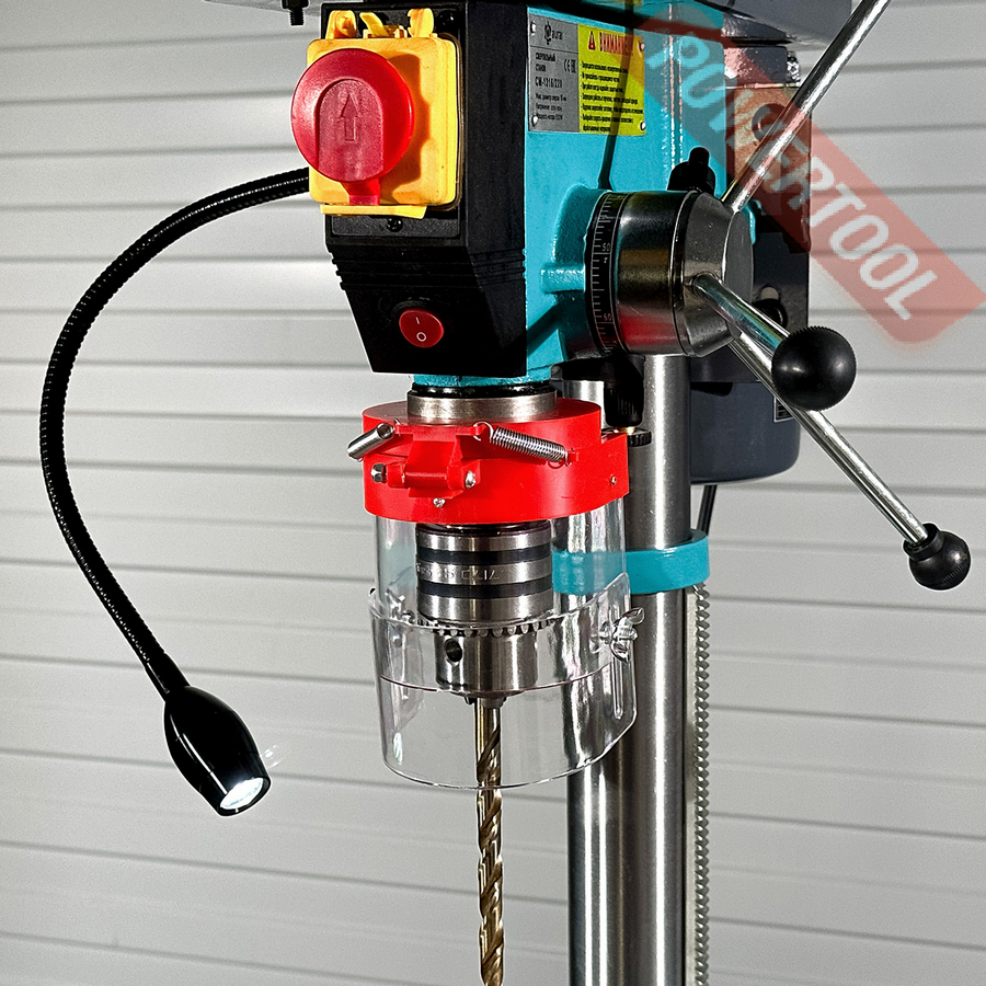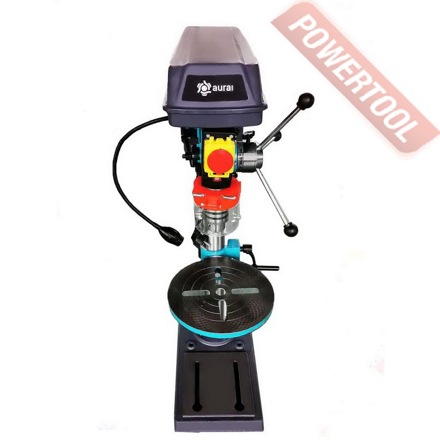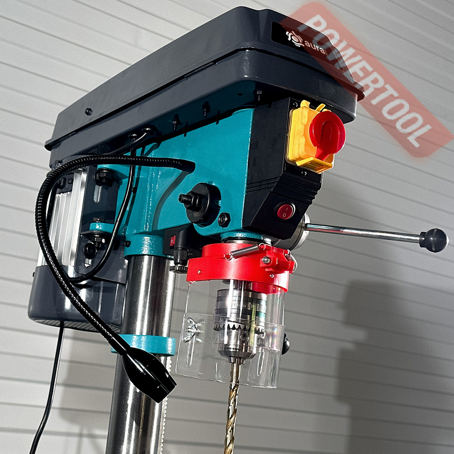 Для удобства при эксплуатации станок оснащен яркой LED подсветкой рабочей зоны и лазерным указателем. Для обеспечения безопасности станок оборудован кнопкой аварийной остановки, а так же прозрачным экраном, который обеспечивает защиту оператора и при этом не закрывает обзор. Станок комплектуется машинными тисками. Сверлильный станок CM-1316/220 станет незаменимым помощником в домашней мастерской или гараже. AURA TOOLS рекомендует данный сверлильный станок для оснащения слесарных и столярных мастерских учебных заведений.