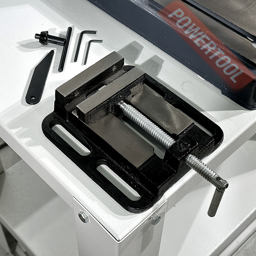 Для удобства при эксплуатации станок оснащен лазерным указателем и яркой LED подсветкой рабочей зоны. Станок оборудован защитным экраном, который обеспечивает защиту оператора и при этом не закрывает обзор. Станок CM-1316/380 комплектуется машинными тисками с шириной губок 100 мм.