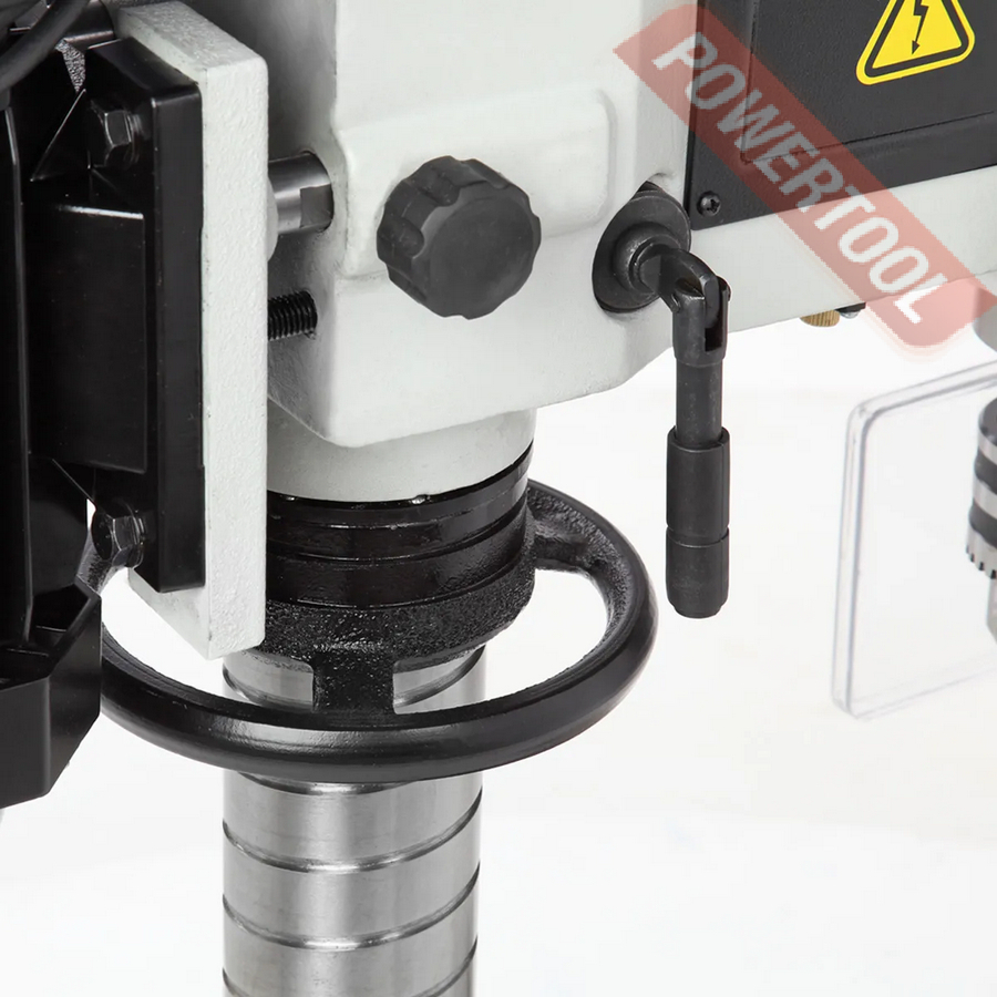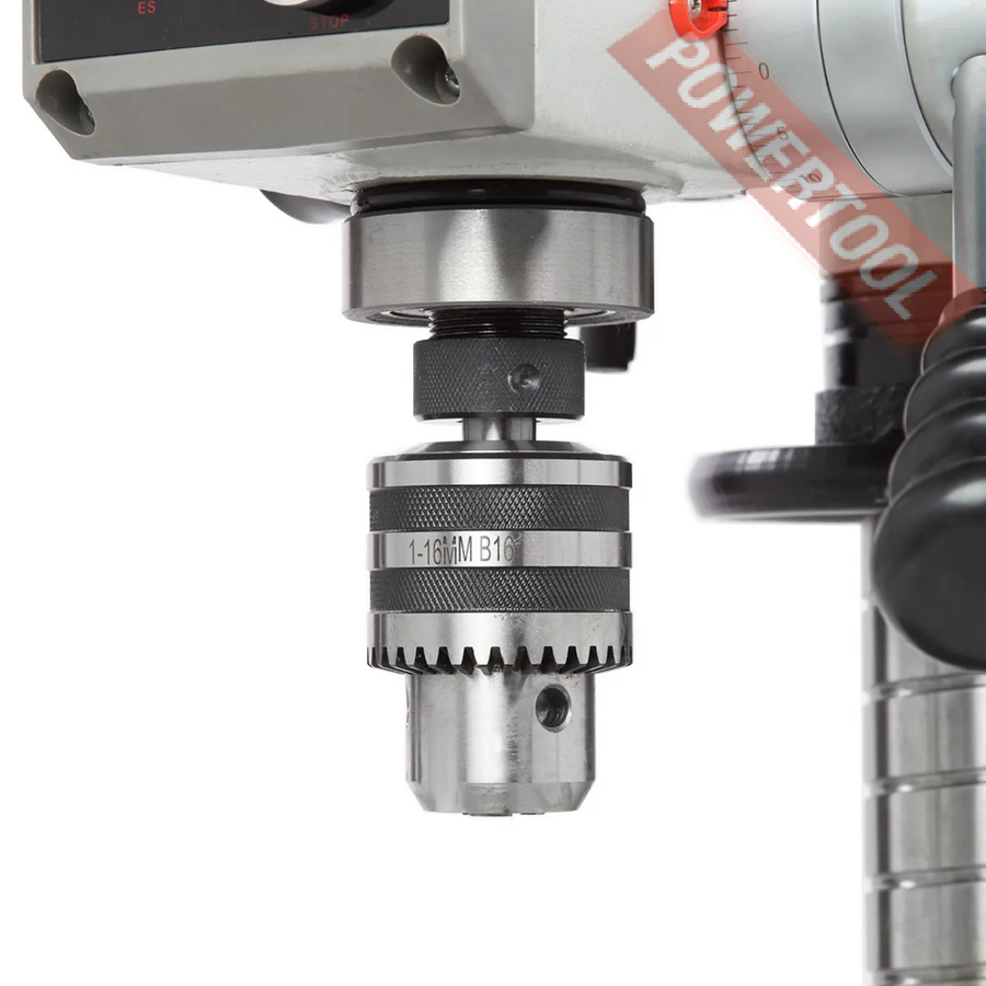 Сверлильный станок, 750 Вт, 380 В, max диаметр сверления 20 мм, частота вращения шпинделя 200-2400 об/мин, 5 скоростей, ступенчатая регулировка оборотов, конус шпинделя КМ-2, посадочное сверлильного патрона B16, диапазон хвостовиков для патрона 1-16 мм, ход пиноли шпинделя 90 мм, вылет шпинделя 205 мм, шпиндель-стол 320 мм, шпиндель-основание 530 мм, диаметр стойки 70 мм, размер основания 520х345 мм, размер стола 277х246 мм, наклон стола влево/вправо 45/45 градусов, 2 Т-образных паза, подсветка рабочей зоны, лазерный целеуказатель, габариты ДхШхВ 695х510х1010 мм, вес 88 кг, в комплекте патрон ключевой В16 1-16 мм, оправка КМ-2/В16, защитный экран, набор инструментов, тиски.