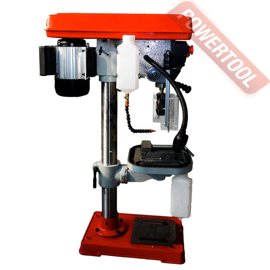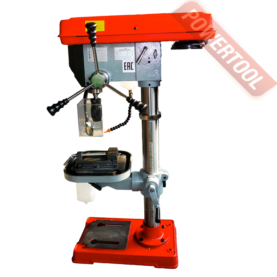 Сверлильный станок, 900 Вт, 220 В, max диаметр сверления 20 мм, частота вращения шпинделя 180-2740 об/мин, 12 передач, ступенчатая регулировка оборотов, конус шпинделя КМ-2, посадочное сверлильного патрона B16, диапазон хвостовиков для патрона 1-16 мм, ход пиноли шпинделя 80 мм, вылет шпинделя 190 мм, шпиндель-стол 470 мм, шпиндель-основание 670 мм, диаметр колонны 73 мм, размер стола 305х305 мм, наклон стола влево/вправо 45/45 градусов, 2 Т-образных паза, подсветка рабочей зоны, лазерный целеуказатель, габариты ДхШхВ 645х400х1050 мм, вес 55 кг, в комплекте патрон быстрозажимной В16 1-16 мм, оправка КМ-2/В16, защитный экран, набор инструментов, тиски, система СОЖ.