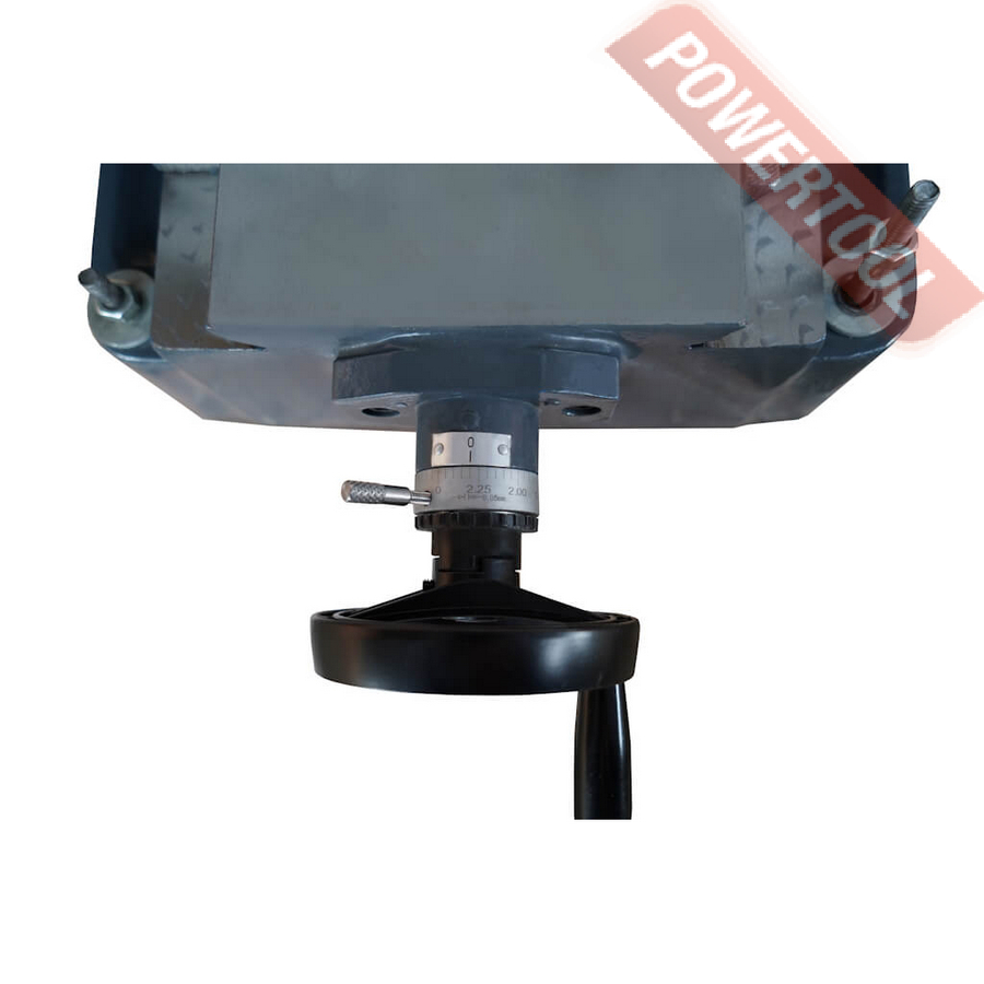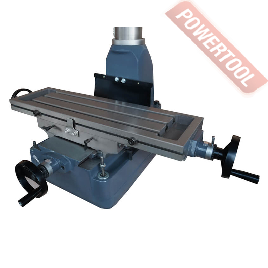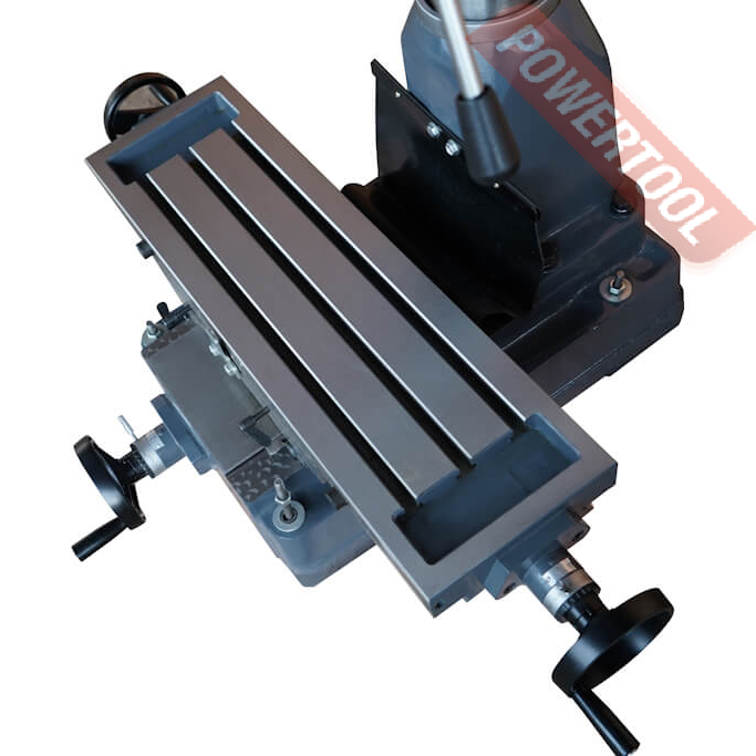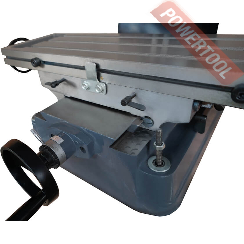 Для удобства позиционирования заготовки, станок оснащен координатным столом размером 730x210 мм, ход стола составляет 450х170 мм. Также, на столе есть три Т-образных паза размером (14х3х45), с помощью которых вы можете установить дополнительную оснастку для крепления заготовок. Перемещение стола можно зафиксировать с помощью специальных винтов. Также, стол оснащен ограничителем хода по оси X. Цена деления лимба по оси X\Y составляет 0,05 мм.