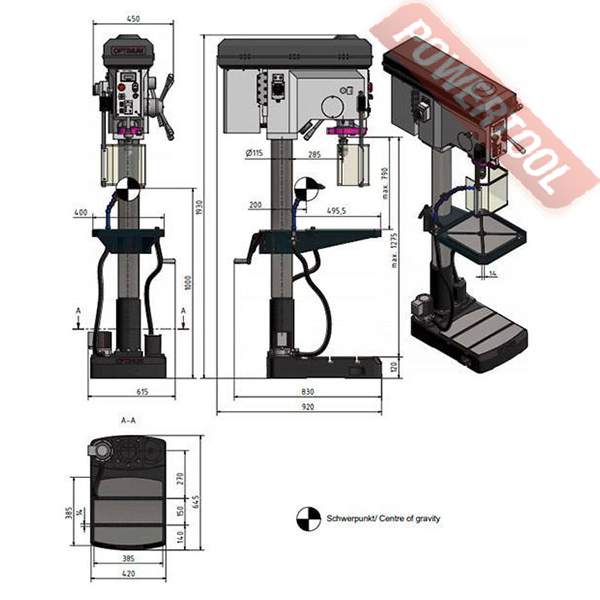 Сверлильный станок по металлу OPTIMUM OPTIdrill B 34HV с мощным бесщеточным приводом.