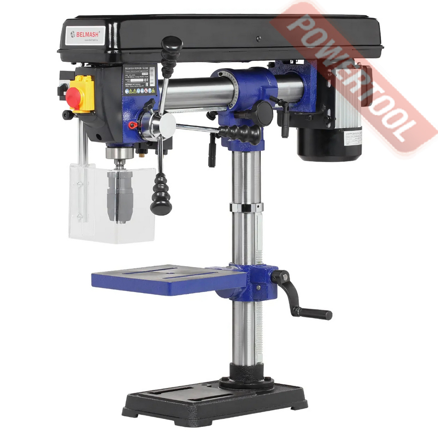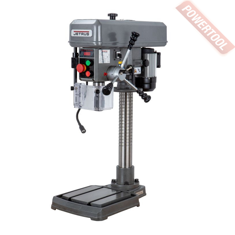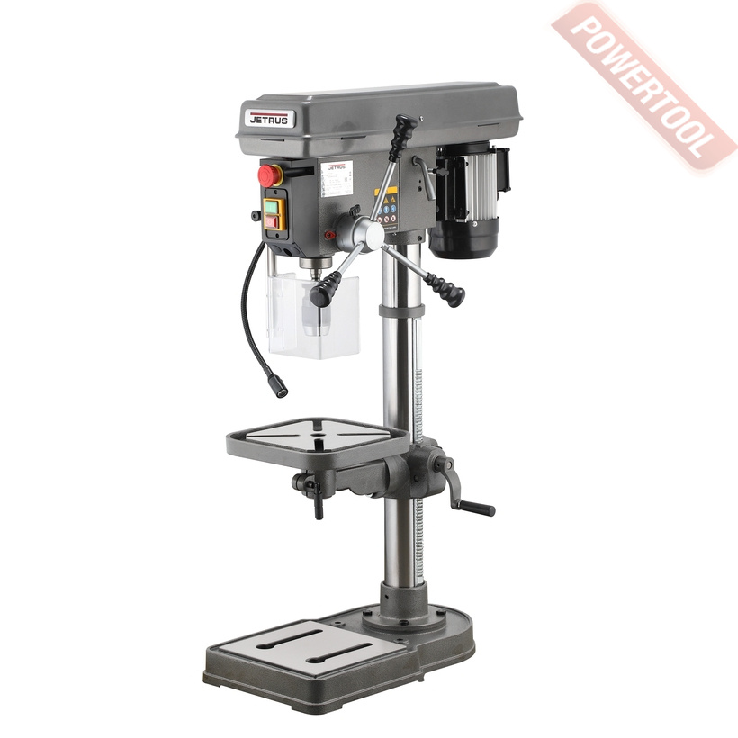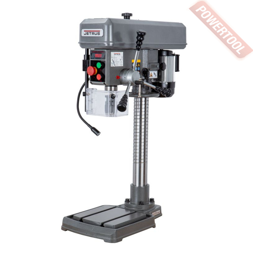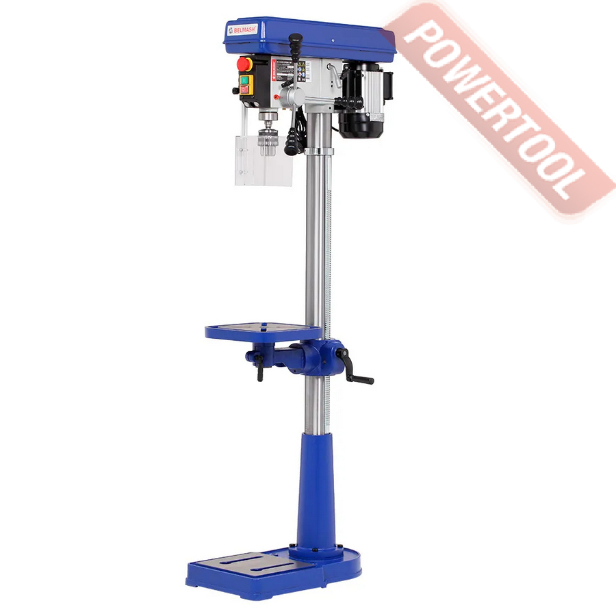 Сверлильный станок, 1500 Вт, 380 В, max диаметр сверления 25 мм, частота вращения шпинделя 300-1540 об/мин, 4 передачи, ступенчатая регулировка оборотов, автоподача пиноли с диапазоном 0,08/0,1/0,12/0,14 мм/об, конус шпинделя КМ-3, посадочное сверлильного патрона JT3, диапазон хвостовиков для патрона 5-20 мм, ход пиноли шпинделя 130 мм, вылет шпинделя 240 мм, шпиндель-стол 415 мм, шпиндель-основание 645 мм, диаметр стойки 85 мм, размер основания 600х350 мм, размер стола 280х300 мм, наклон стола влево/вправо 45/45 градусов, 2 Т-образных паза 16 мм, габариты 880х510х1180 мм, вес 125 кг, в комплекте патрон JT3 5-20 мм, оправка КМ-3/JT3, втулка переходная КМ-3/КМ-2, защитный экран, набор инструментов.