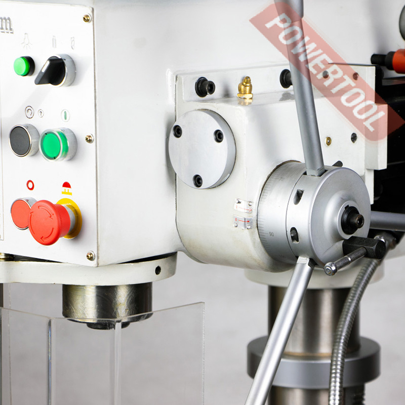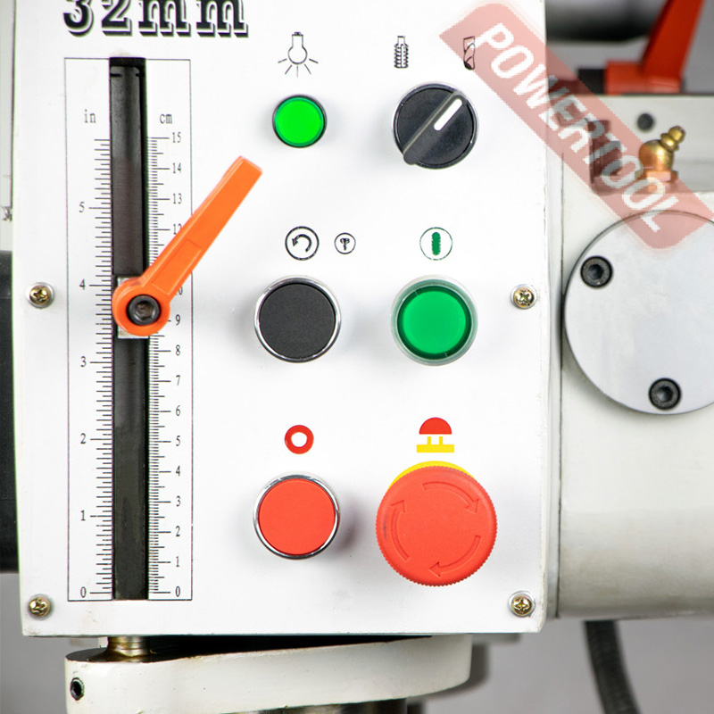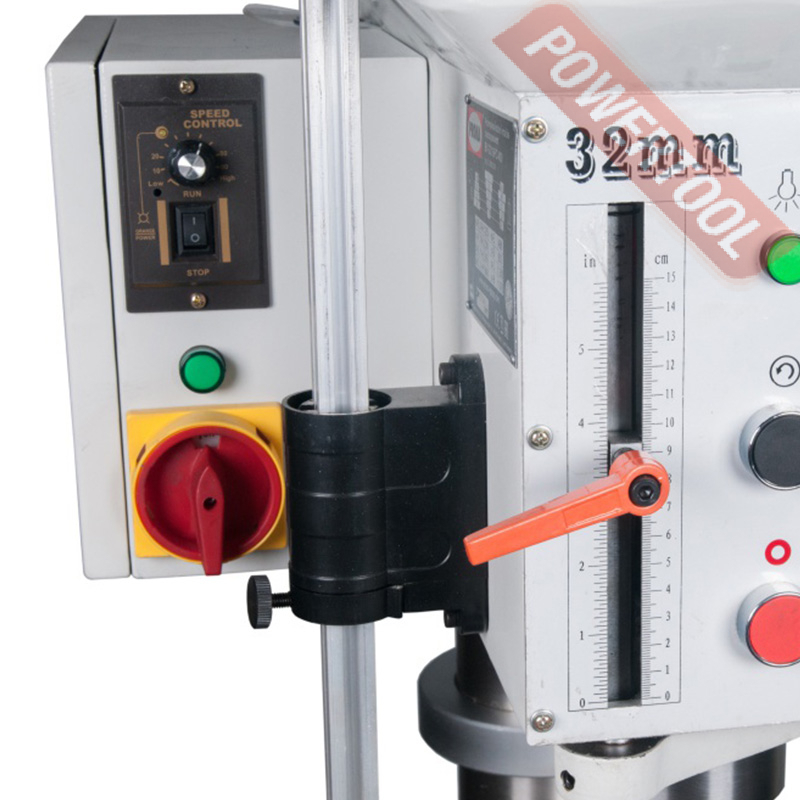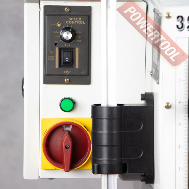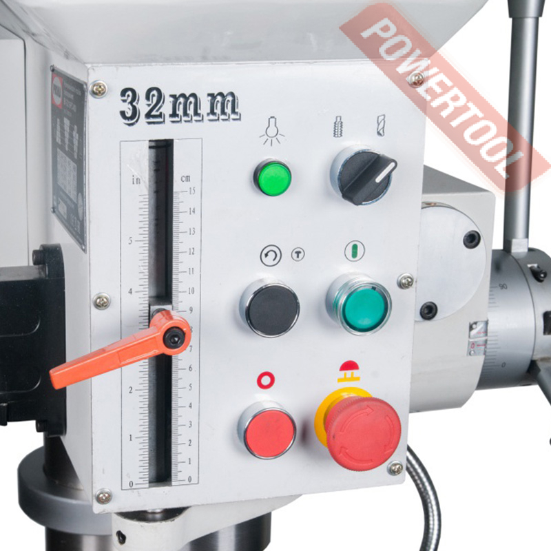 Сверлильный станок по металлу PROMA BY-3216PC/400 представляет собой практичное оборудование для серийного производства и обработки металлических деталей. Для удобства работы имеется освещение и система охлаждения. Общая высота станка достигает 1405 мм. Автоматическая подача значительно упрощает обработку деталей в промышленных объемах. Ограничение по диаметру нанесения резьбы: М24 для чугуна и М20 для стали. Прочная стальная колонна диаметром 100 мм обеспечивает жесткость конструкции и способствует передаче усилия от рукоятки к сверлу.