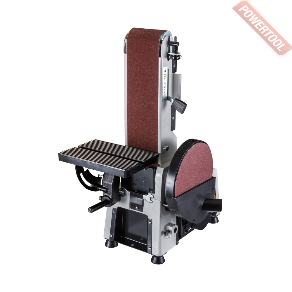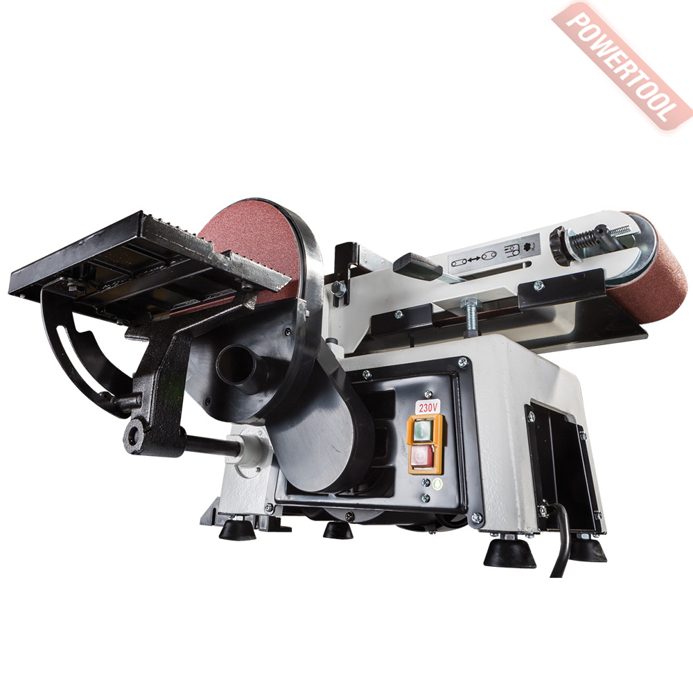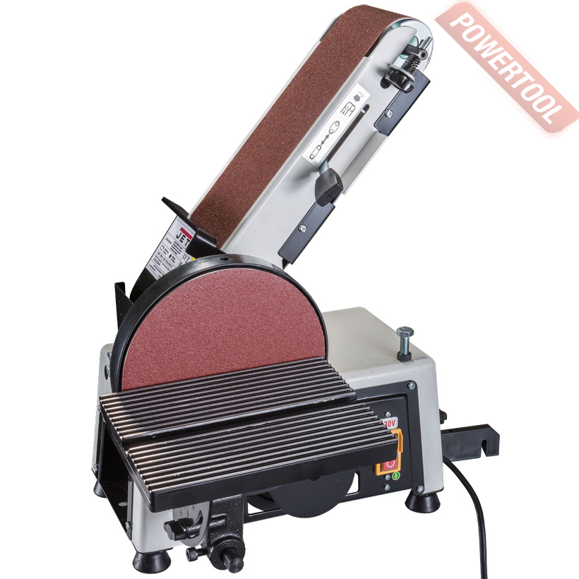 Тарельчато-ленточной шлифовальный станок, 520 Вт, 220 В, 1850 об/мин, диаметр шлифкруга 200 мм, рабочий стол 225х115 мм, угол наклона 45 градусов, скорость ленты 8 м/с, шлифлента 100х914 мм, угол наклона ленты 0-90 градусов, вытяжной штуцер 38 мм,размер ДхШхВ 500х450х350 мм, вес 26 кг.