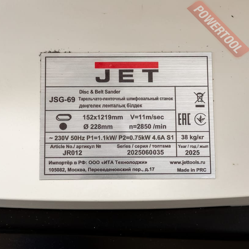 Тарельчато-ленточный шлифовальный станок JET JSG-69 арт.JR012