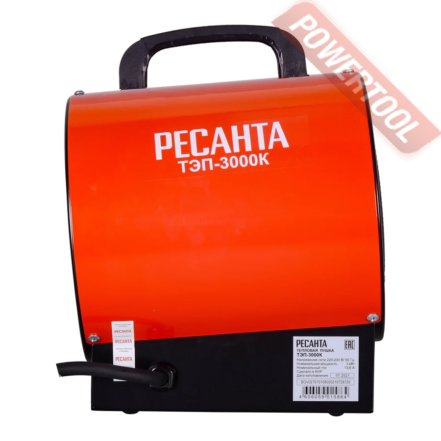 - 1. Тепловая пушка электрическая РЕСАНТА ТЭП-3000К.