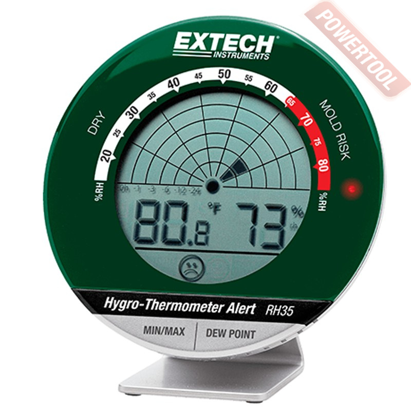 Термогигрометр настольный EXTECH RH35 - конструкция прибора позволяет следить за изменением температуры, влажности и температуры точки росы в течение последних 24 часов. Можно использовать как настольный прибор на подставке, можно повесить на стену.