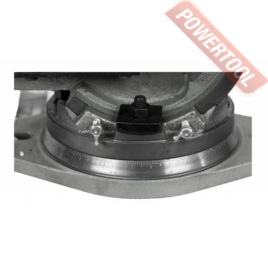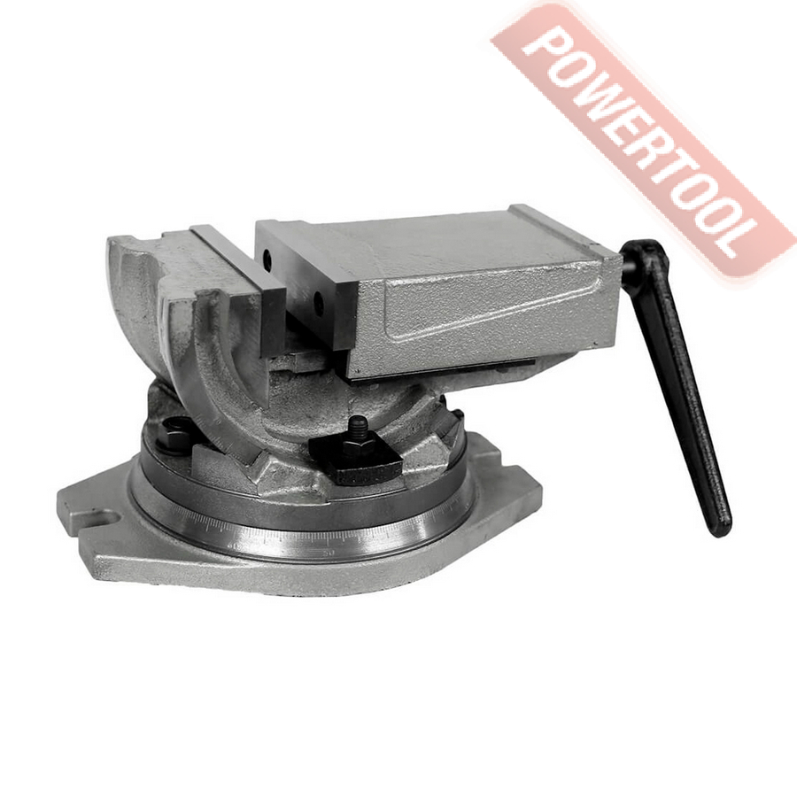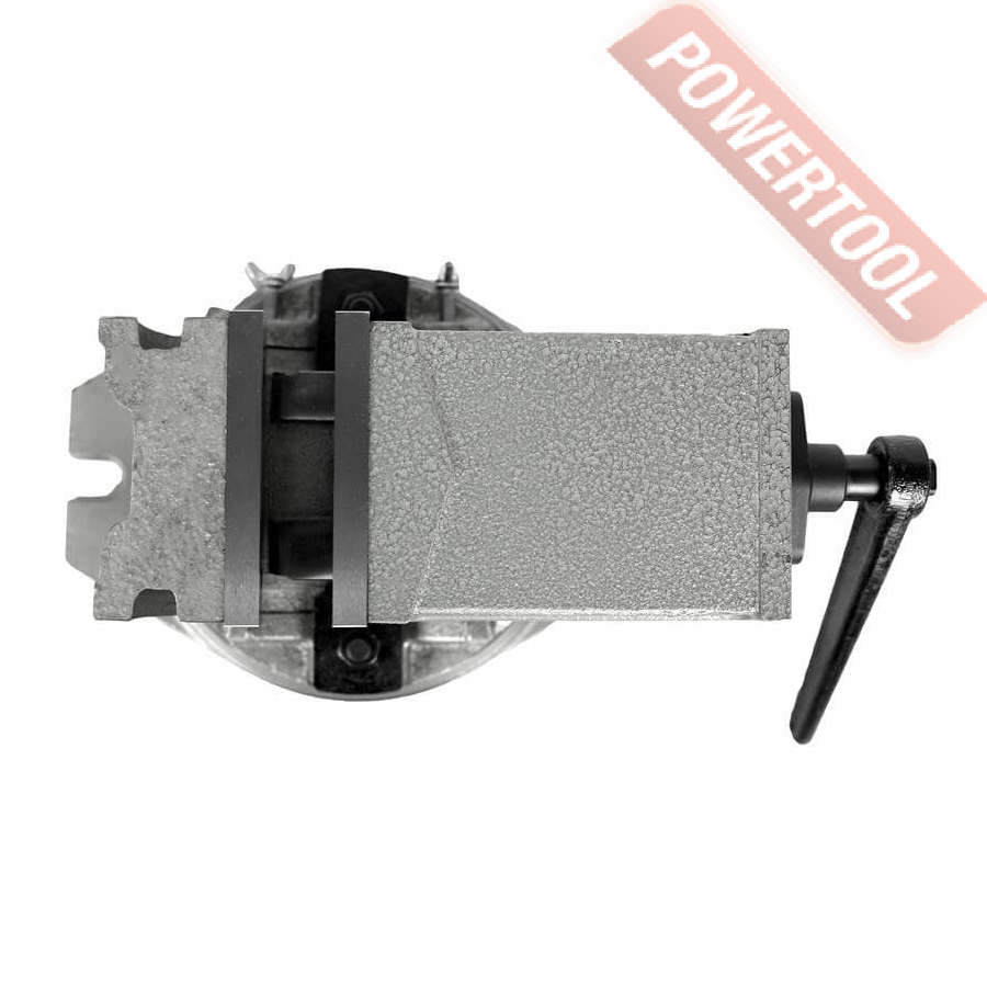 Тиски станочные прецизионные двухосевые, ширина губок 100 мм, рабочий ход 75 мм, высота губок 40 мм, угол наклона по вертикали 90 градусов, параллельность 0,06 мм, перпендикулярность 0,05 мм, функция поворота 360 градусов, усилие зажима 2500 кг, вес 15 кг.