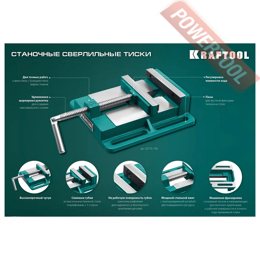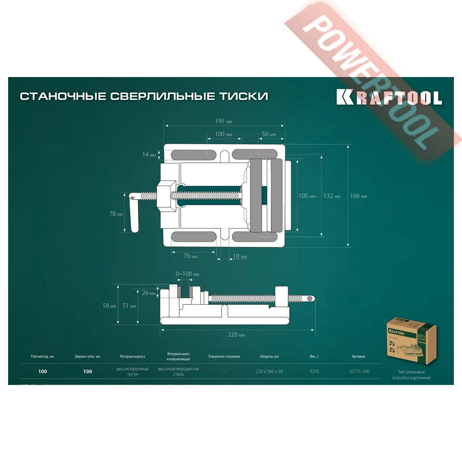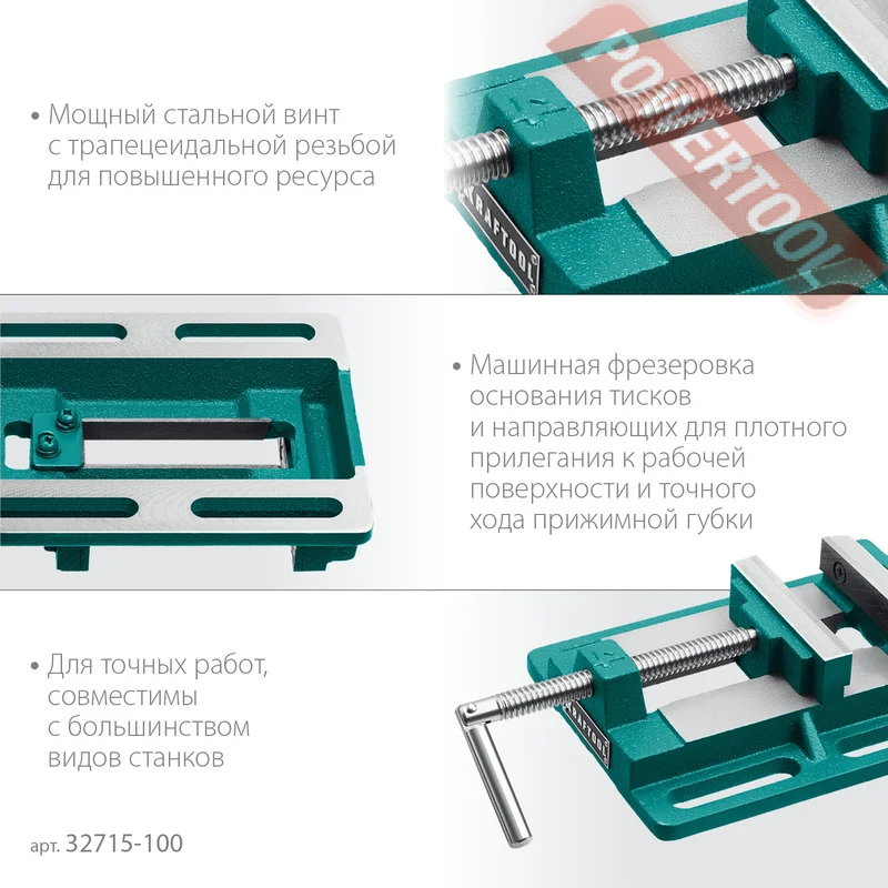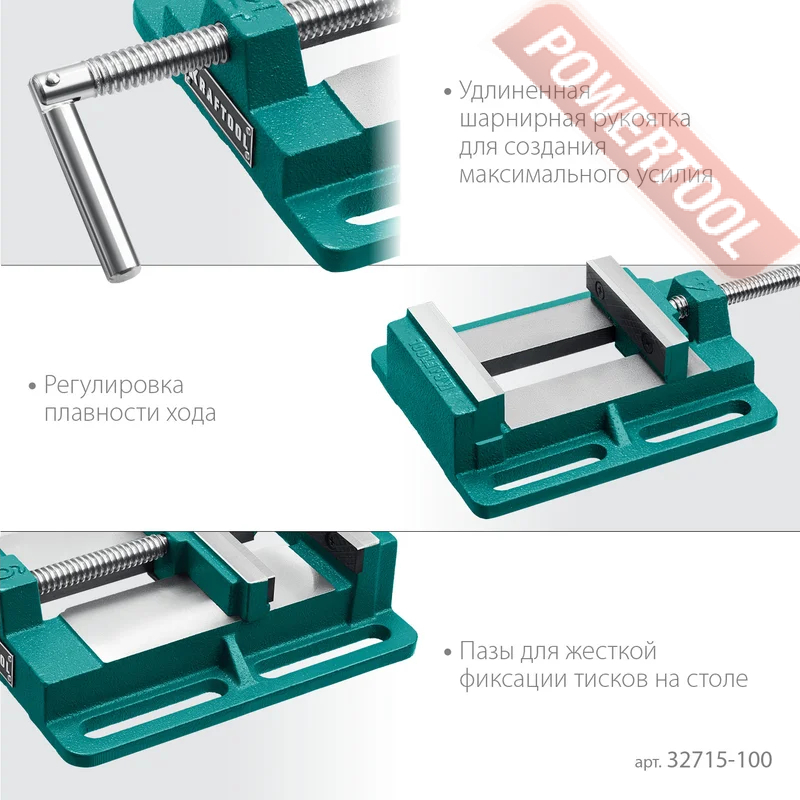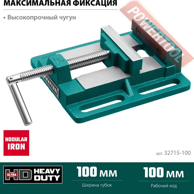 Тиски станочные сверлильные 100х100 мм KRAFTOOL арт.32715-100