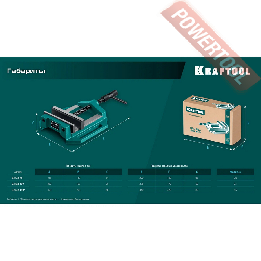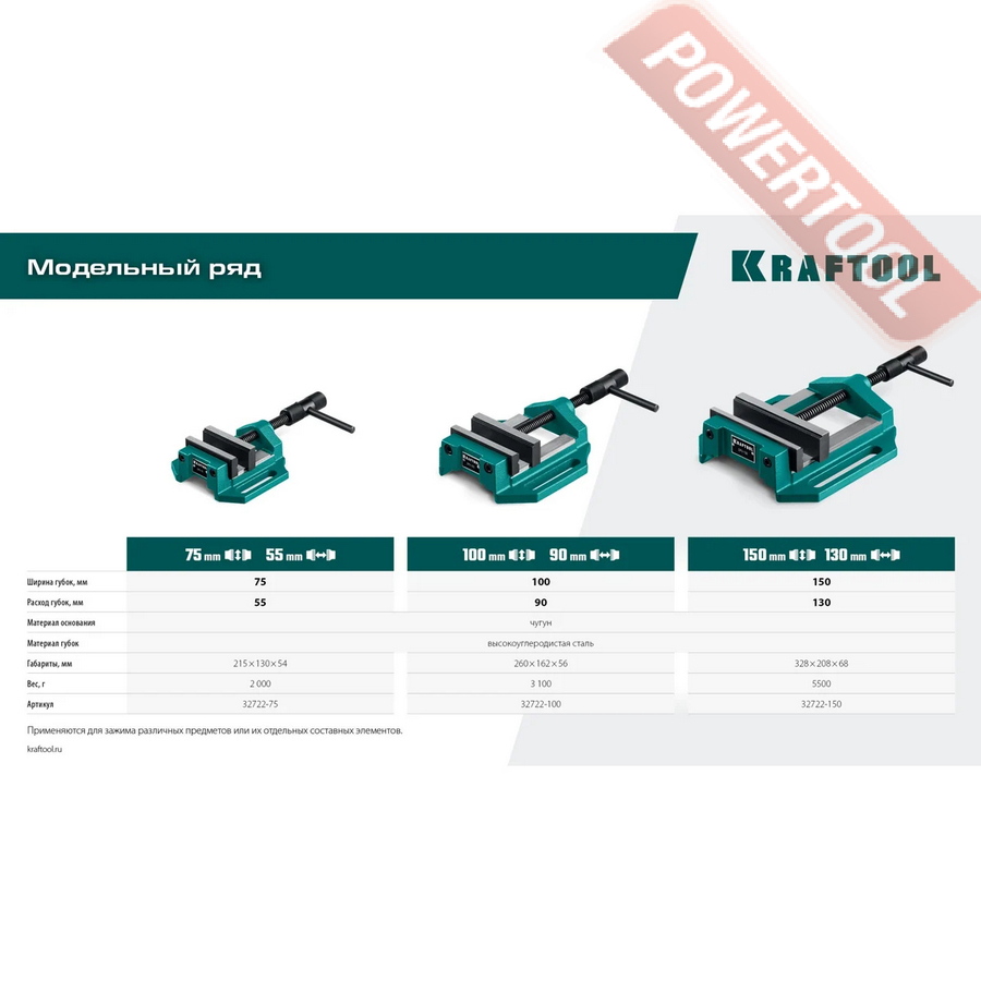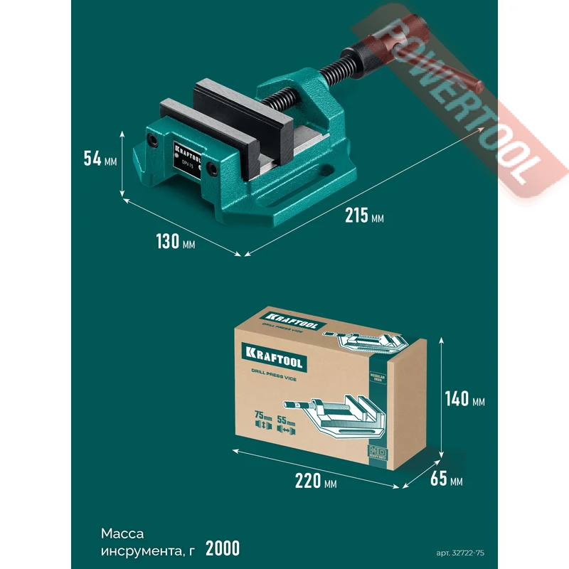 Тиски станочные сверлильные 75х55 мм KRAFTOOL DPV-75 арт.32722-75