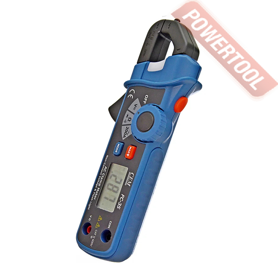 Токовые клещи CEM FC-35 представляют собой бесконтактный электроизмерительный прибор от компании CEM. Компактный, удобный в пользовании мультиметр позволяет быстро и точно определить величину переменного тока в диапазоне до 200 А, напряжения переменного и постоянного тока в пределах до 600 В, а также сопротивления до 20 МОм.