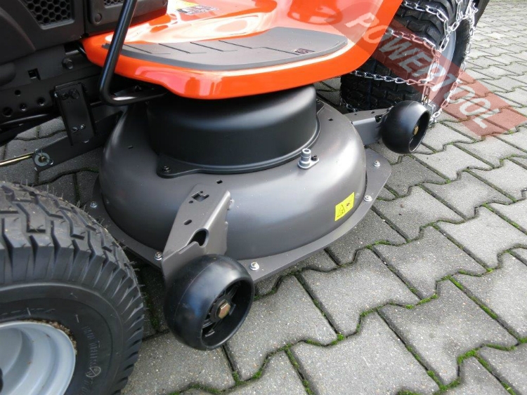 • Долговечный двигатель Briggs & Stratton. Двухцилиндровый 4-х тактный двигатель Briggs & Stratton Endurance V-Twin объёмом 655,5 куб.см и мощностью 15 л.с. с системой смазки под максимальным давлением, масляным насосом и масляным фильтром. Мощный и малошумный. Автоматический выключатель под сиденьем. Трактор оснащен установленным под сиденьем выключателем. Если водитель покинет сиденье, двигатель и режущая дека автоматически выключатся. Индикатор уровня зарядки аккумулятора с соединением к зарядной станции. Дает четкое указание на состояние аккумулятора, что позволяет легко увидеть, когда необходима зарядка. Подключение зарядного устройства находится рядом с индикатором, для более удобной подзарядки аккумулятора. Легкодоступная горловина топливного бака. Для заполнения топливного бака не требуется открытия капота. Индикатор уровня топлива. Пользователь может легко увидеть, когда необходимо заправить топливный бак. Счетчик моточасов с напоминанием об обслуживании. Указывает на необходимость технического обслуживания. Индикатор заполнения травосборника. Сигнал подсказывает, что пора опустошить травосборник.