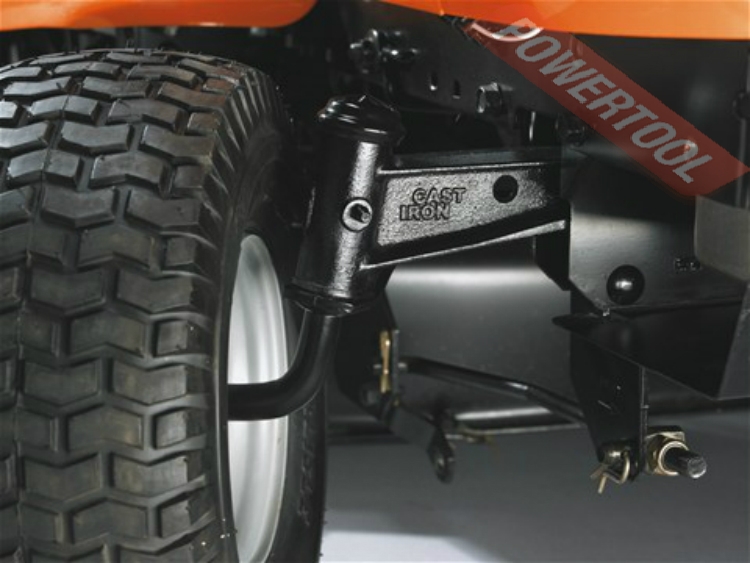 • Гидростатическая трансмиссия с педальным управлением, т.е. как на вариаторе (газ, тормоз) без переключения скоростей! Управление скоростью и направлением движения осуществляется с помощью педалей, что позволяет оператору держать обе руки на рулевом колесе и максимально контролировать процесс управления. Система U-Cut, обеспечивающая увеличение угла поворота передних колес, позволяет легко объезжать препятствия и окашивать газон вокруг них. Система характеризуется уменьшением диаметра не окошенного круга при развороте трактора, повышенной эффективностью кошения и увеличенной маневренностью. Поворотный передний мост. Обеспечивает хорошую устойчивость и комфорт во время движения. Прочное стальное шасси. Надежное стальное шасси наделяет трактор долговечностью и исключительной прочностью. Двойные тяги. Меньший радиус поворота и повышенная маневренность. Литой передний мост. Обеспечивает превосходную устойчивость и равновесие машины.