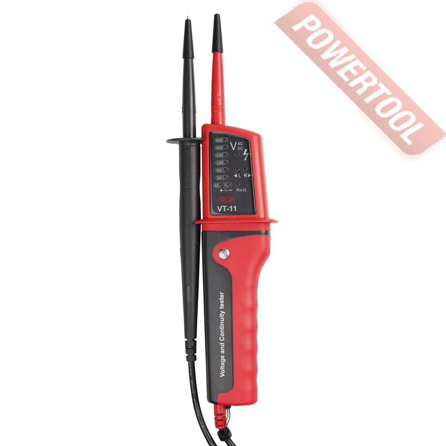 Указатель напряжения RGK VT-11 - это компактный и удобный в работе прибор, который позволяет быстро определить наличие тока в проводнике, цепи или розетке, а также примерно оценить величину напряжения в диапазоне от 12 до 690 В. Оборудование такого типа чаще всего применяется при ремонте бытовых электросетей, систем освещения и различной электроники.