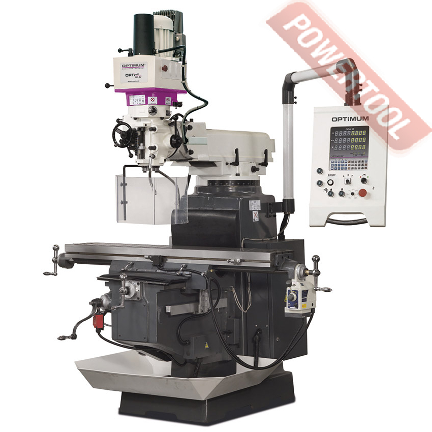 Универсальный фрезерный станок по металлу OPTIMUM MF 4V для профессионального использования. Бесступенчатый привод с электронным преобразователем частоты и цифровым 3-осевым индикатором положения DPA 21.
