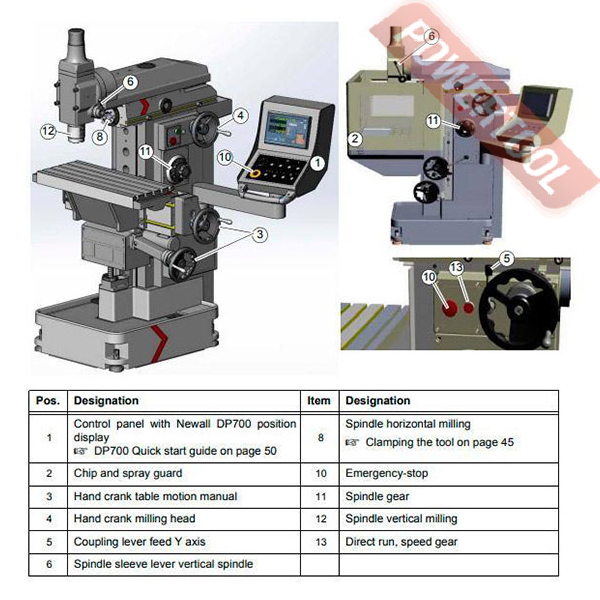 Универсальный фрезерный станок по металлу OPTIMUM MZ 4 с 3-осевым устройством цифровой индикации DP 700 от NEWALL.