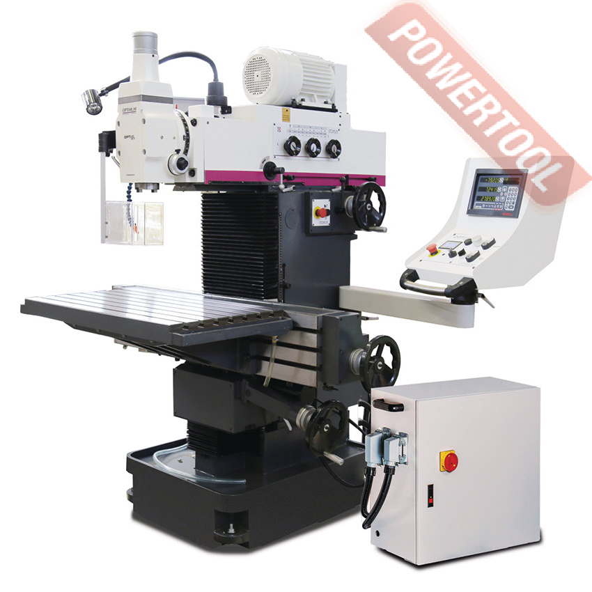 Универсальный фрезерный станок по металлу OPTIMUM MZ 4S с 3-х координатным устройством цифровой индикации DP 700 от NEWALL, а также с частотным преобразователем оси подачи с панелью управления.