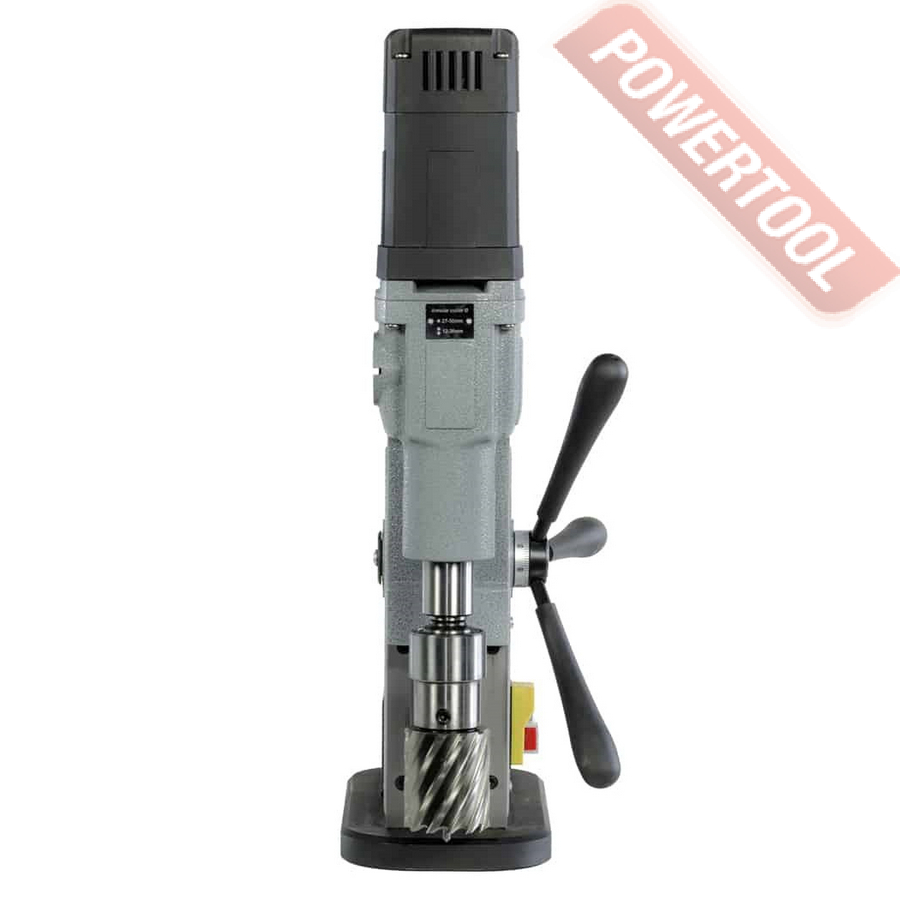 Вакуумный сверлильный станок, 1250 Вт, 220 В, max диаметр корончатого сверла 50 мм, max диаметр спирального сверла 23 мм, конус шпинделя КМ 3, крепление корончатого сверла на Weldon 19, ход шпинделя 170 мм, частота вращения шпинделя 380/690 об/мин, 2 скорости, прижимная сила 2942 Н, размер вакуумного основания ДхШ 300х140 мм, габариты ДхШхВ 430х200х590 мм, вес 10,7 кг, регулировка оборотов, в комплекте патрон КМ 3/Weldon 19, ручки 3 шт, комплект ключей для настройки станка, клин.