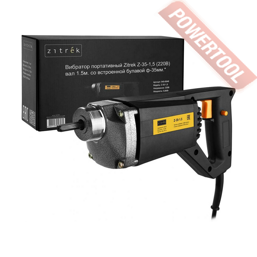 Вибратор глубинный механический ZITREK Z-35-1,5 используется для уплотнения бетонных смесей. Мощность электрического двигателя 0,8 кВт. Питание осуществляется от стандартной сети с переменным током 220 В. Длина вала - 1,5 м, диаметр булавы 35 мм. Компактные габариты устройства может позволяют эксплуатировать его на объектах с ограниченным рабочим пространством. Кнопка включения располагается непосредственно на D-образной рукояти.