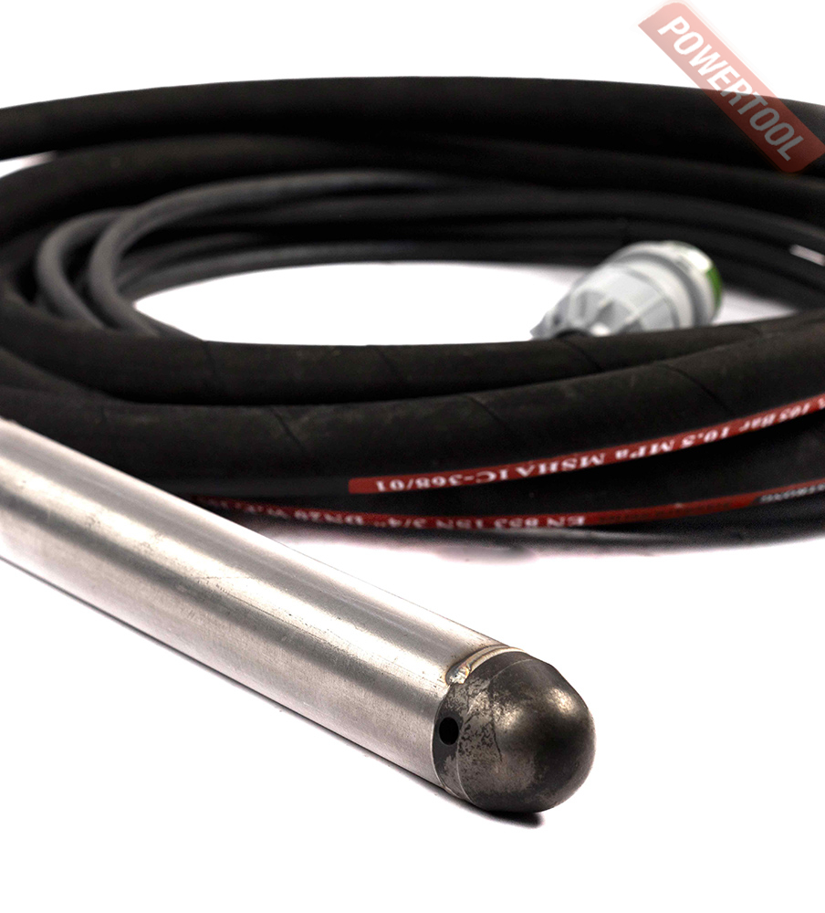 Оснащен системой защиты от перегрева, класс влагозащиты вибробулавы IP 68. Комплект включает в себя гибкий вал длиной 5 метров, вибробулаву со встроенным высокочастотным двигателем, электрический кабель с выключателем длиной 10 метров.