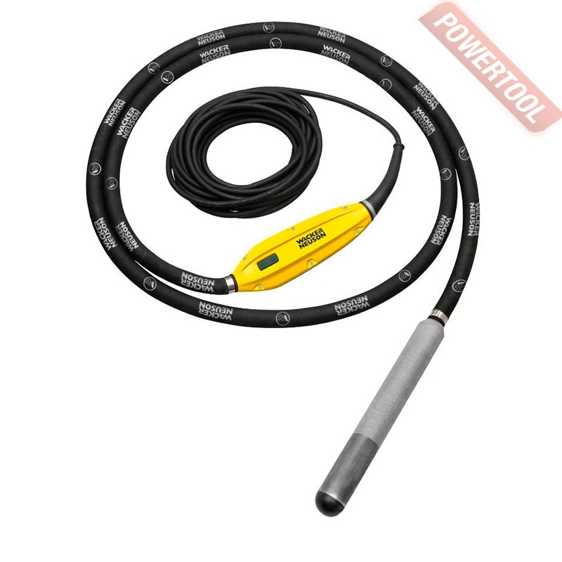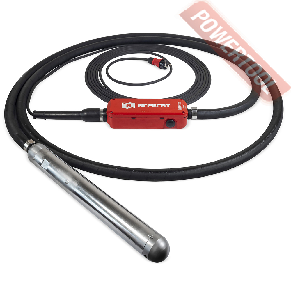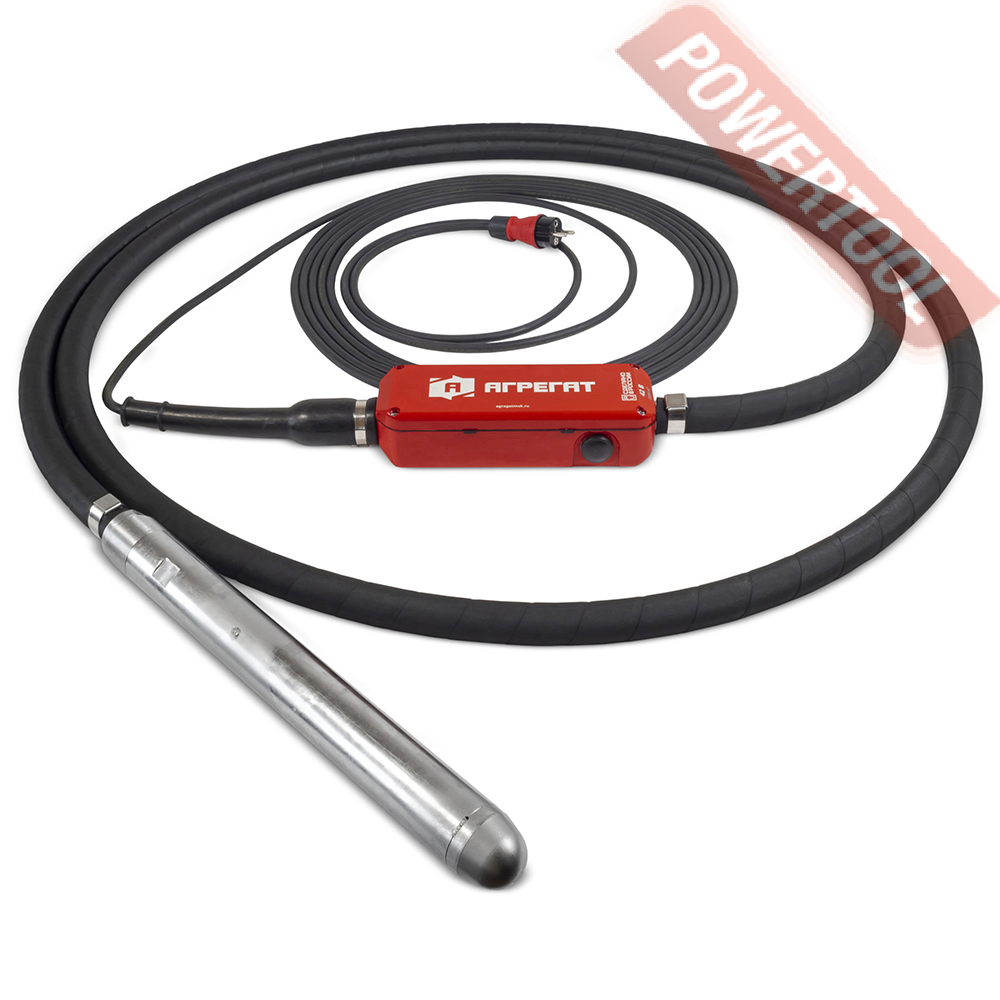 Вибратор глубинный высокочастотный для уплотнения бетона со встроенным преобразователем напряжения, диаметр булавы 50 мм, эффективный диаметр уплотнения 65 см, длина булавы 468 мм, гибкий вал 5 м, центробежная сила 3,76 кН, напряжение 220 В, мощность 900 Вт, частота 50/60 Гц, потребляемый ток 2,7 А, число колебаний 12000, амплитуда колебаний 2,1 мм, IP68, электрический кабель 10 м, вес 17,4 кг.