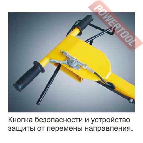 - Кнопка безопасности и устройство защиты от перемены направления для безопасности оператора.