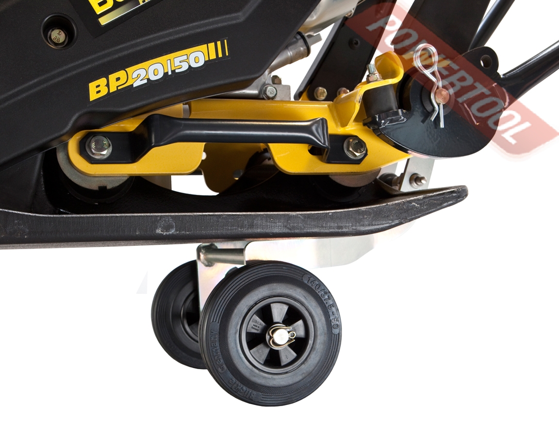 - Для транспортировки виброплиты можно опционально приобрети специальные транспортировочные колеса. Они интегрируются в плиту, легко убираются в специальное место и не мешают оператору в работе.