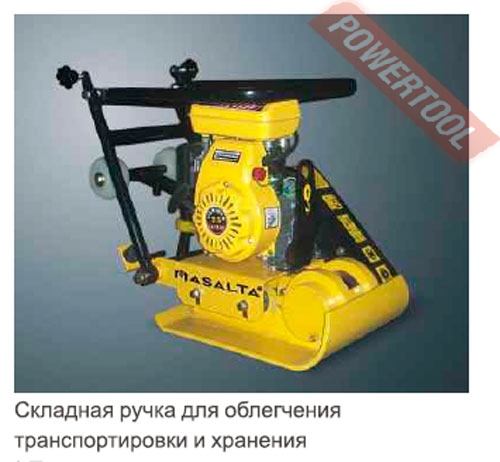 - Рабочая рукоятка складная. Обеспечивает превосходную маневренность. Позволяет удобно перевозить и хранить виброплиту.