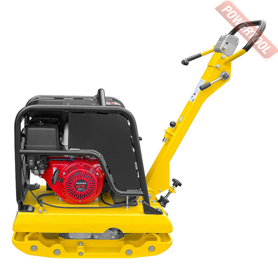 - Для удобства оператора кнопка включения/выключения реверсивного привода находится на ручке виброплиты.